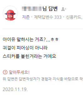 피어싱존이 스티컨디존인줄 앎... '스티커 입니다.', '스티커 제품인데...'를 줄여서 말했을 뿐인데 브랜드화 되어버렸어요 ㅋㅋㅋ 근데 이제는 스티커가 뭔지 사람들이 궁금해하기 시작함. 저도 궁금해서 네이버쇼핑 같은데서 '스티컨디'라고 쳐보니까 비슷한 제품이 나오긴 하네요. 진짜 빨라 ㅋㅋㅋ 근데 아이유는 피어싱 안하고 있어서 아는 사람들은 잠시 오잉? 했다가 빵터지기도 했다고 합니다 ^^