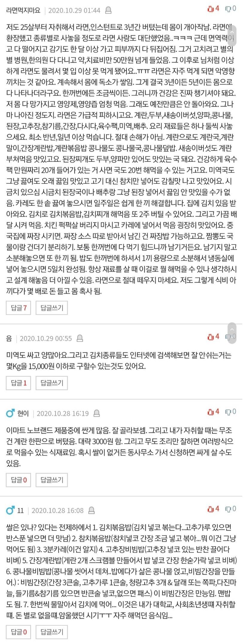 ▼돈 없는 자취생인데 라면을 못 먹는 다는 말에 다같이 생활꿀팁 방출하는 네티즌들ㅋㅋㅋ