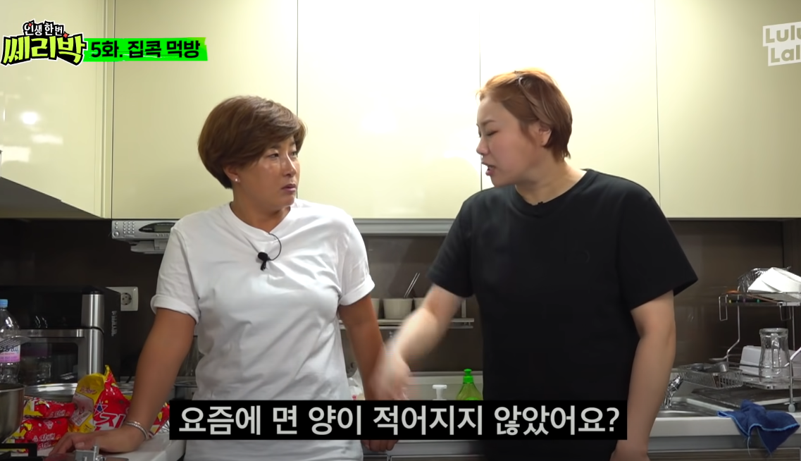 요부분만 자막이 없는데 박세리 님이 '큰 적이 있었어?' 하면, 햇님이 놀람 ㅋㅋ 근데 이 전 대화가 햇님이 최소 3개 이상 끓인다고. 그 이하는 끓여본적이 없어서 못끓인다는 얘기였음 ㅋㅋ