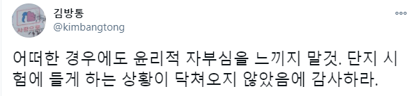 와... 진짜 오늘도 인터넷으로 배웁니다... '어떠한 경우에도 윤리적 자부심을 느끼지 말것. 단지 시험에 들게하는 상황이 닥쳐오지 않았음에 감사하라... 정말 공감합니다.