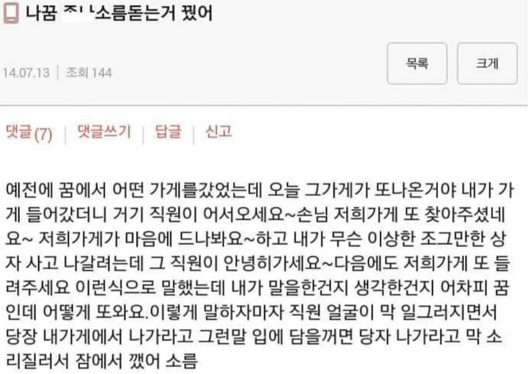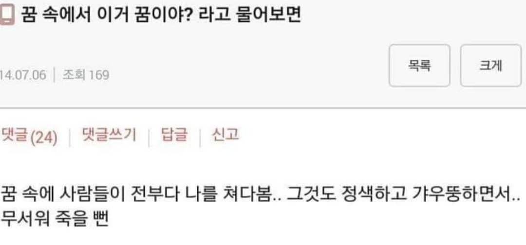 꿈 속에서 내가 꿈인 걸 인식하면 (루시드 드림?) 주변 사람들 반응... 소름...