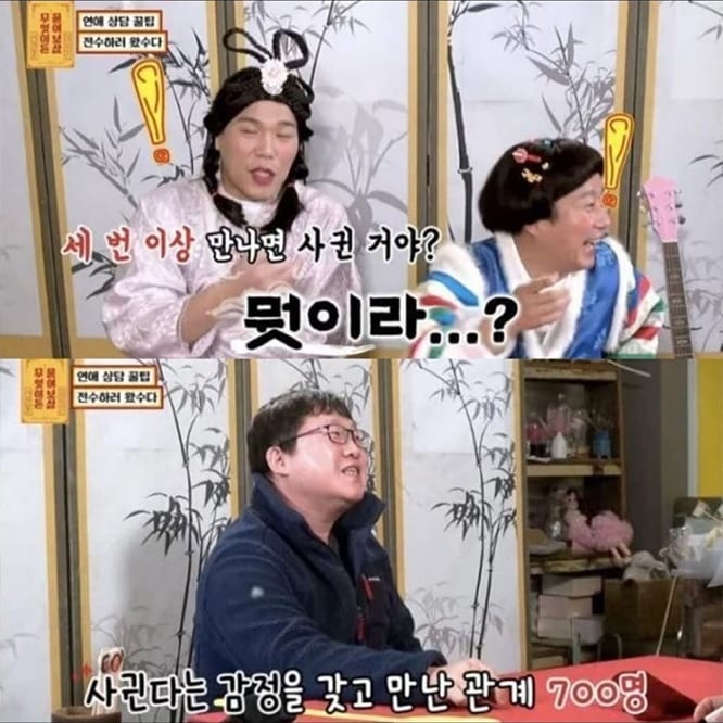 ▼ 영상. 무엇이든 물어보살 - 연애 경험만 700명? 만난 여자가 700명 이라고요? 자칭 연애 고수남의 꿀팁