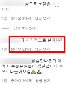 좋아요 숫자... 이건 진짜 악순환이다... 남 도와줘 봤자 남는건 상처 뿐... 훈훈한 소식도 많긴 하지만 이런 소식 한 방에 다 날아가는 느낌...