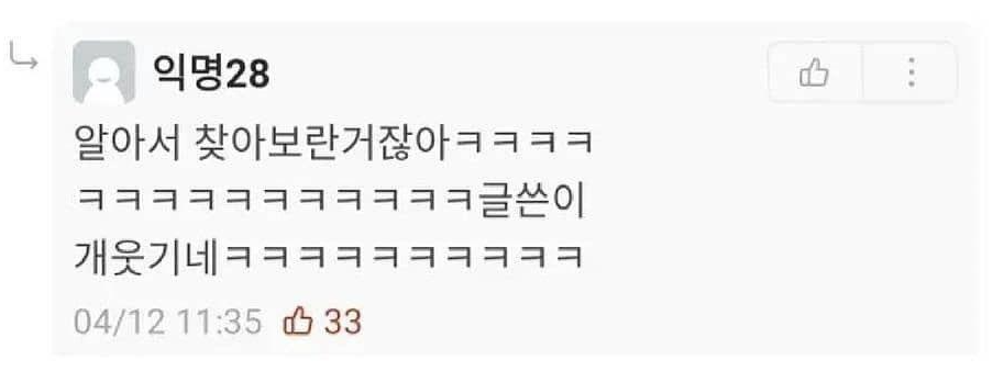 ex) 여기서 핑프짓하지마시고 포털사이트 검색창에 한번만 검색해보고오세요.