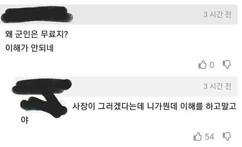 자랑스런 대한의 아들 군장병(용사)들은 식사가 무료!