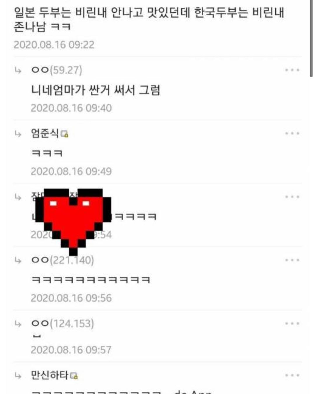 원래 저렇게 댓글 달면 안 좋은거라고 할텐데 원글이 일본 두부 얘기여서 그런가...