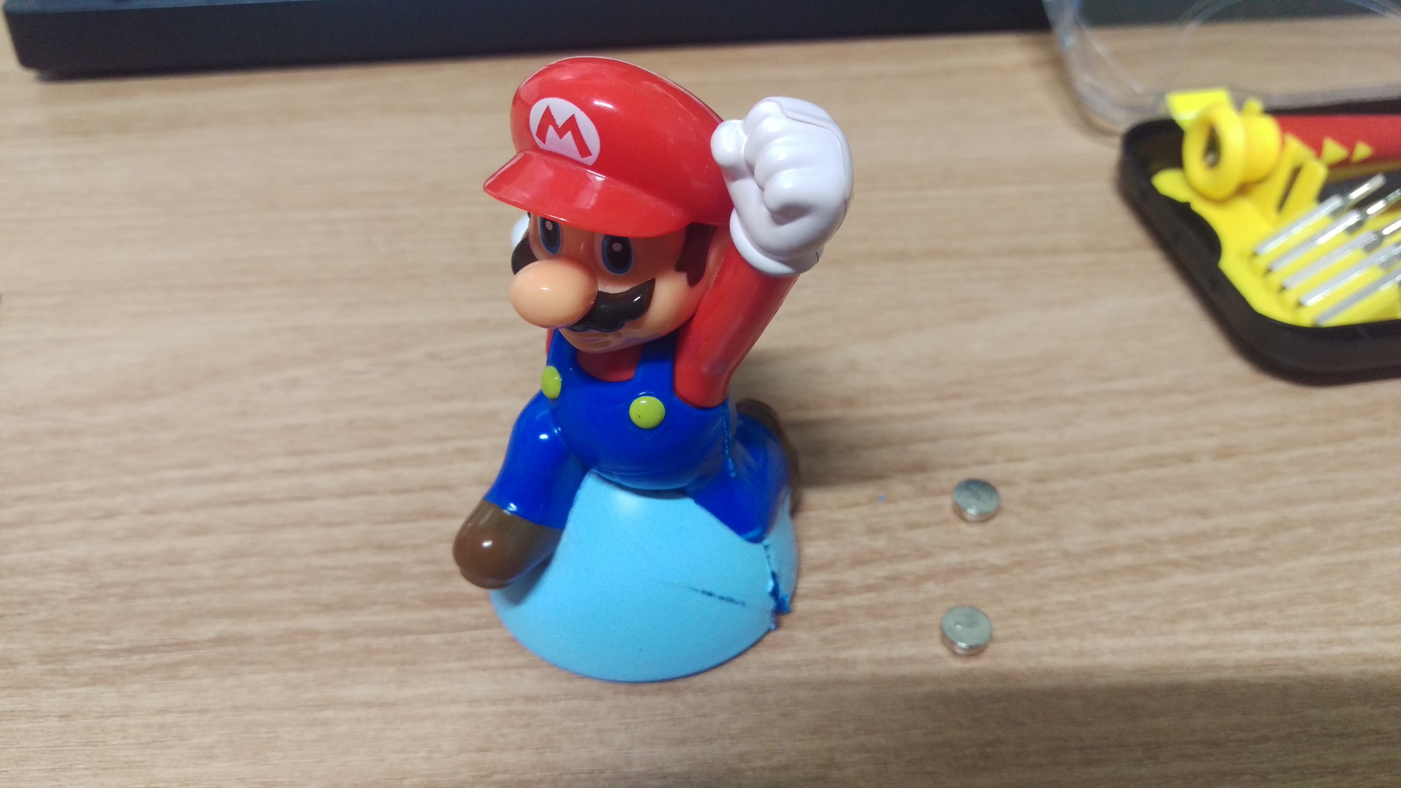 예전에 구했던 슈퍼마리오 피규어 겸 장난감인데요, 맥도날드 해피밀로 나왔던 제품인데 당시에도 인기가 많았던것 같습니다. 어른들한테 인기가 더 많았.... 아무튼 이 장난감은 마리오가 점프하는 모션의 피규어와 하단에 점프하느라 바닥에서 띄우면 띠용~ 하고 효과음이 나오도록 되어있는 장치가 들어있습니다.