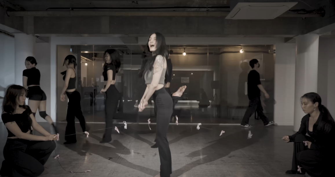 프리우드먼 댄서 모니카 님과 댄서들의 조화로움이 돋보이는 구성인 것 같아요. 줄넘기 부분은 뭔가 어리광 부리는 화자의 느낌이 위트있게 느껴지는 구간 같이 느껴졌습니다.