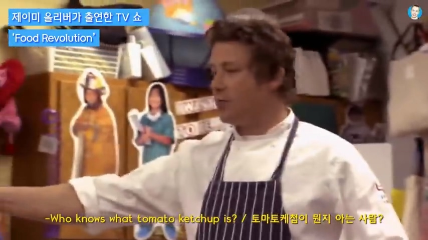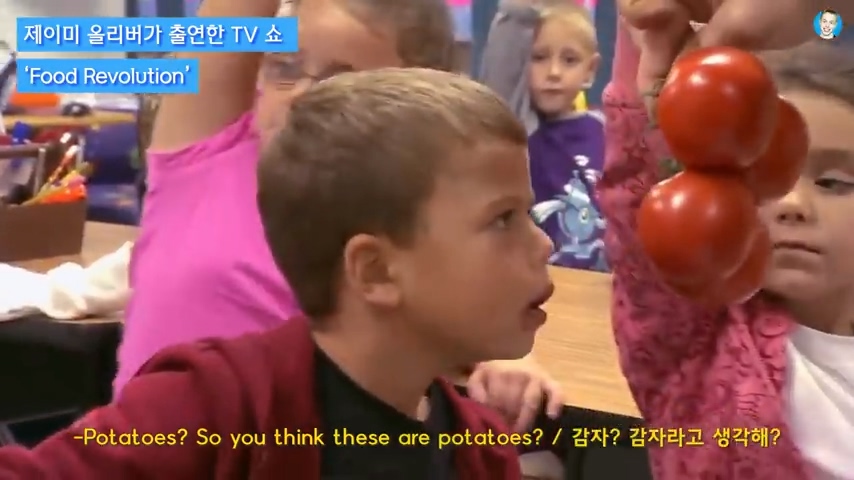 아래는 유명한 요리사 '제이미 올리버'의 TV쇼 'Food Revolution(음식 혁명)'의 한 장면입니다. 제이미 올리버는 영국 출신이었지만, Food Revolution은 미국 웨스트버지니아주에서 촬영됐다고 하네요. 검색해보니 웨스트버지니아주의 헌팅턴이라는 곳이라고 하는데 최악의 건강주의보 도시로 선정되었기 때문에 이 프로젝트를 진행했다고 합니다. 아래 영상은 어린 학생들을 대상으로 음식에 관한 질문을 하는 내용인데 좀 충격이에요.