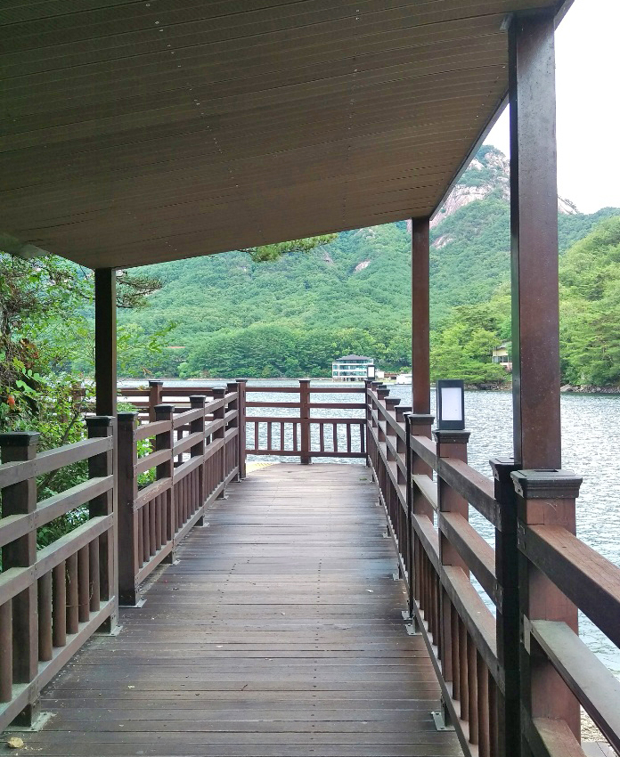 호수를 빙 둘러 데크가 잘 정비되어 있는데 물가를 바로 걷는 바닷길은 종종 봤어도 이런 호수 데크길은 처음이었다. 다른 곳에도 호수에 데크가 많이 설치되는 모양인데 아무튼 뭔가 물 위를 걷는 기분도 들어서 굉장히 상쾌했다.