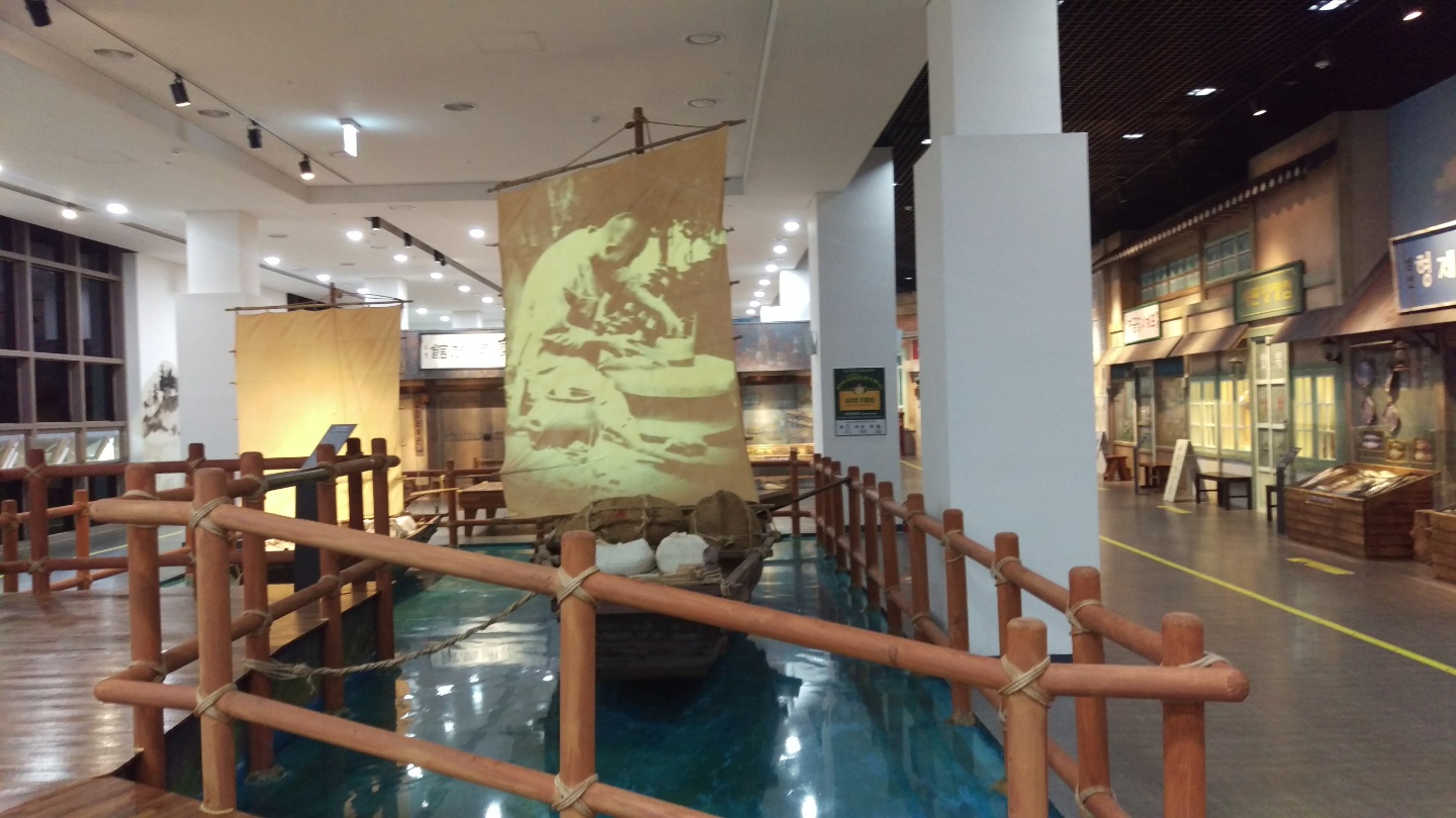 1층 전시관 좌측으로 먼저 들어가게 되어있는데 옛날 장마당 골목 거리를 꾸며놓았다. 고랑포구역사박물관 답게 돛배의 모습과 옛 장터 모습을 포토존 느낌으로 디테일하게 꾸며놓아서 사진찍기 좋아보였다.