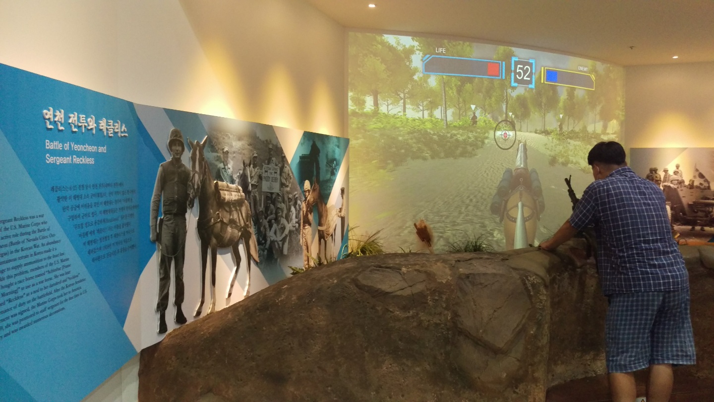 뭔가 전시 물품이 많지 않지만 역사적으로 중요한 곳에 이런 박물관을 짓게 된다면 이유야 어떻게 됐든 실무자로서 콘텐츠를 짜내는 것에 많은 고민을 하게 될 것이다. 나는 이런 분야에 대해서 잘 모르지만 보여줄 만한 실질적인 문화재가 부족한 이런 전시관에서 체험이라든가 포토존 콘텐츠를 만들어 잘 짜넣었다고 생각된다. 뭔가를 기획하고 실행하고 사람들의 반응을 끌어내는건 참 어려운 일이라고 생각된다... 전쟁 관련 박물관이다보니 전쟁 당시의 피해 상황과 현재의 비교라든가 당시 레클리스 군마가 어떤 결정적 역할을 했는지에 대한 콘텐츠를 개발해보면 어떨까, 평화가 얼마나 어렵게 쟁취되었나, 값진 것인가에 대한.... 아무튼 이런 생각도 해보고... 하는 일이 일이다 보니 이런곳에 와서도 요딴 생각들을 하게 된다.