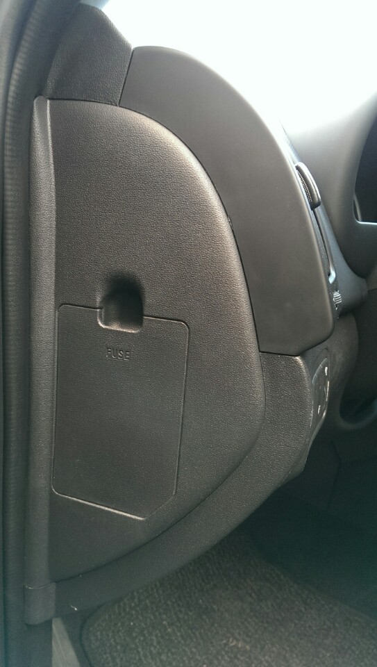▼ i30(아이써티) 2008년식의 퓨즈박스 위치. 운전석 좌측에 FUSE라고 적혀있다.