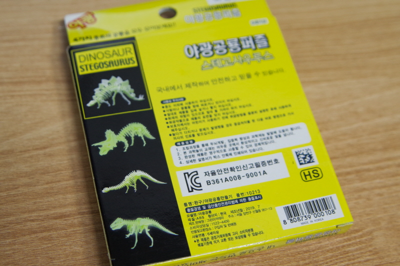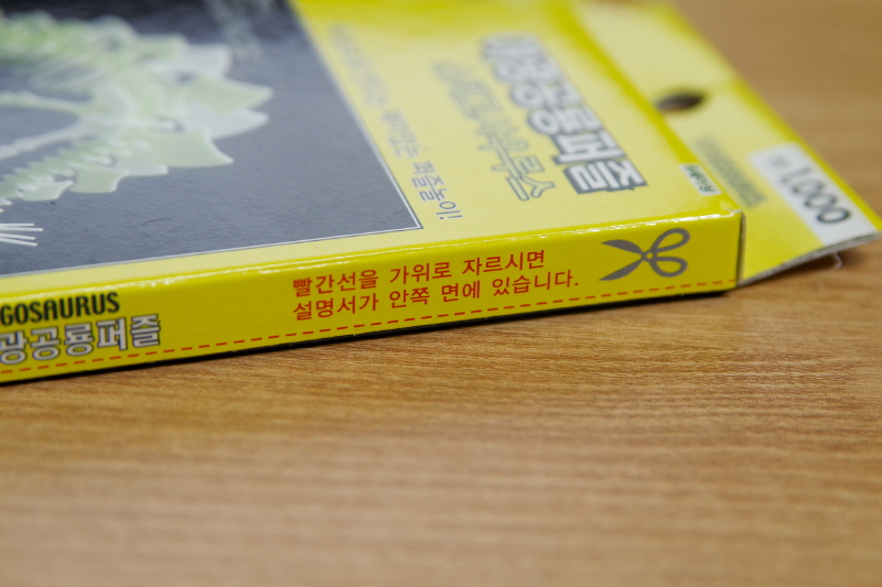 아이들이 공룡에 빠져있는 시기가 있는데 천원 가격으로 조립하면서 같이 놀기 좋을 것 같아요. 한가지 주의해야 할 점은 퍼즐 조각이 작아서 아주 어린 아이는 삼킬 수 있으니 조심해야합니다. 상자에 6세 이상이라고 써있네요.
