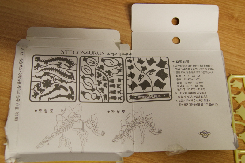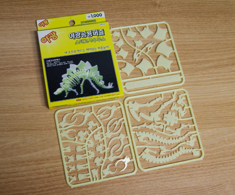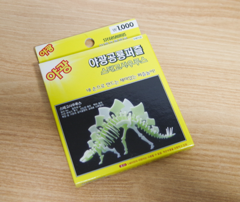 다이소 완구, 장난감 코너에서 사온 야광공룡퍼즐 입니다. 가격은 1,000원이고 몇 가지 다른 공룡 시리즈가 있어요. 제가 사온건 스테고사우르스 입니다. 등 위의 큰 뿔 같은 돌기가 특징이에요. 공룡 퍼즐은 뼈밖에 없는데 스테고사우르스의 살 붙은(?)모습은 찾아보니 아래 사진과 같네요.