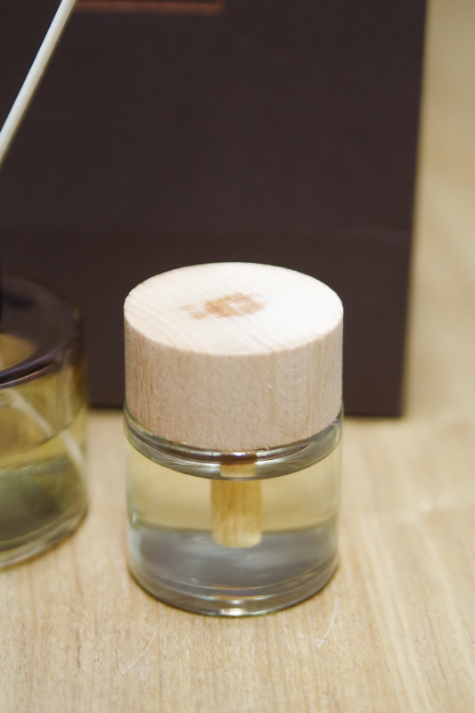 제가 쓰는 디퓨저 병들에 부었습니다. 공병은 인터넷으로 여러개 샀던 것들인데, 차량용 같은거도 함께 사서 지인들도 부어서 나누어주고 그랬습니다. 개인적으로 가운데 보이는 차량용이 크기도 아담하고 나무 뚜껑 자체 디퓨저 리드기능을 해서 편리하고 깔끔해서 좋아합니다.