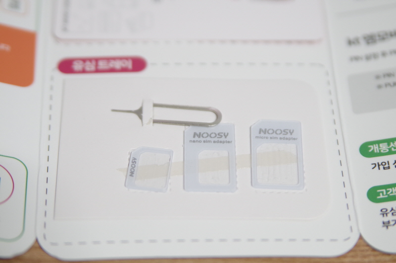 유심카드 내용물을 펼쳐본 모습. 유심 어댑터도 들어있고, 유심 트레이를 꺼내는 바늘같은 도구도 들어있다. 예전에 유심 어댑터? 같은걸 다이소에서 산 적이 있었는데 이렇게 같이 들어있으니까 편리하다.