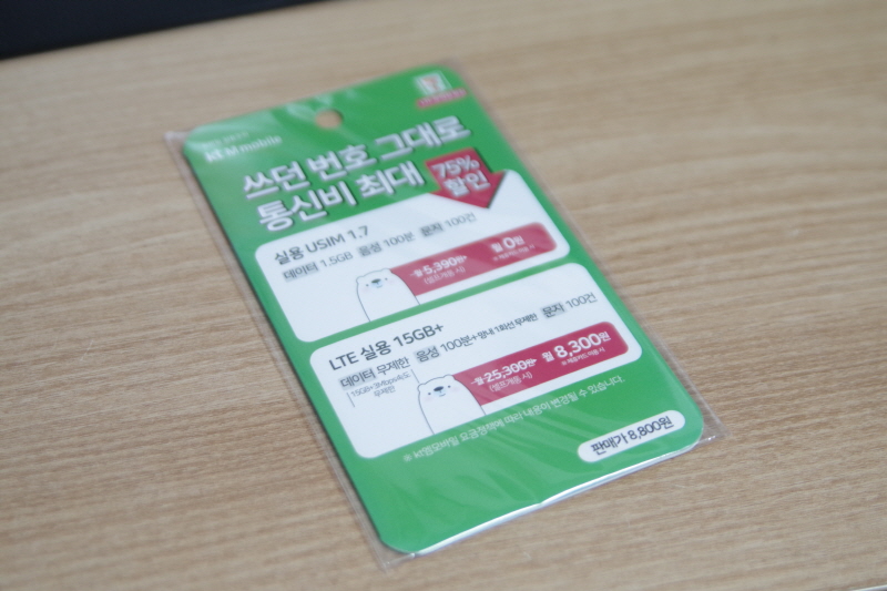 아래 사진은 내가 편의점에서 구입한 유심카드. 8,800원이다.