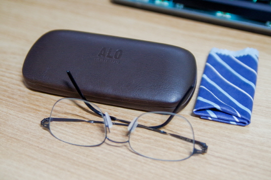 내가 여의도 IFC몰 알로(ALO) 안경점에서 샀던 안경이다. 안경 닦는 갈색 융은 처음에 받았던게 이제는 너무 더러워져서 버리고, 다이소에서 천원정도 하는 저 파란 안경닦이를 사서 쓰는데, 알로에서 처음 줬던 융이 더 좋은것 같다. 다시 근처 지나게 될 일이 있으면 가서 하나 받을 수 있으려나? 따로 판매하는건지는 모르겠다.