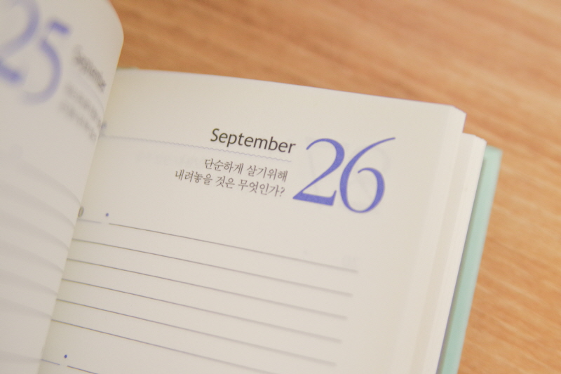 정말 하루에 한 페이지씩 잘 정리되어 있습니다. 내용이 그래도 좀 있다보니 글씨는 조금 작은 편입니다. 가끔 인물이나 그림 사진도 작게 곁들여져 있습니다.