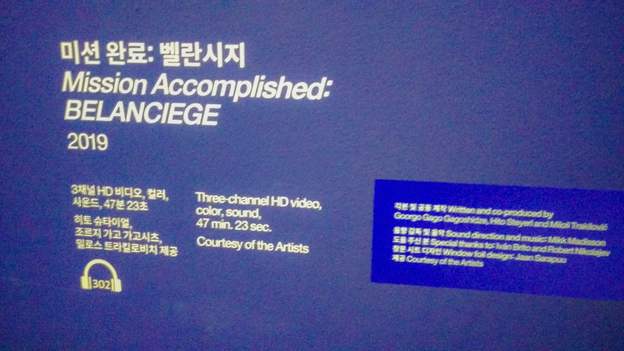 아무튼 영상에서의 작가님은 '강연'이라는 형식을 빌려서 SNS의 홍보 전략에 대한 고찰을 담았다. 영상 말미에 강연 도중 전화가 오고 발렌시아가의 협찬 제안을 받게 되는데 오히려 작가님은 얼마나 줄 거냐고 묻는다고 한다. SNS에서 협찬은 오히려 내가 광고를 해주는 셈이 되기 때문인데, 전시 제목 '벨런시지'는 '발렌시아가 방식'을 뜻한다고 한다.