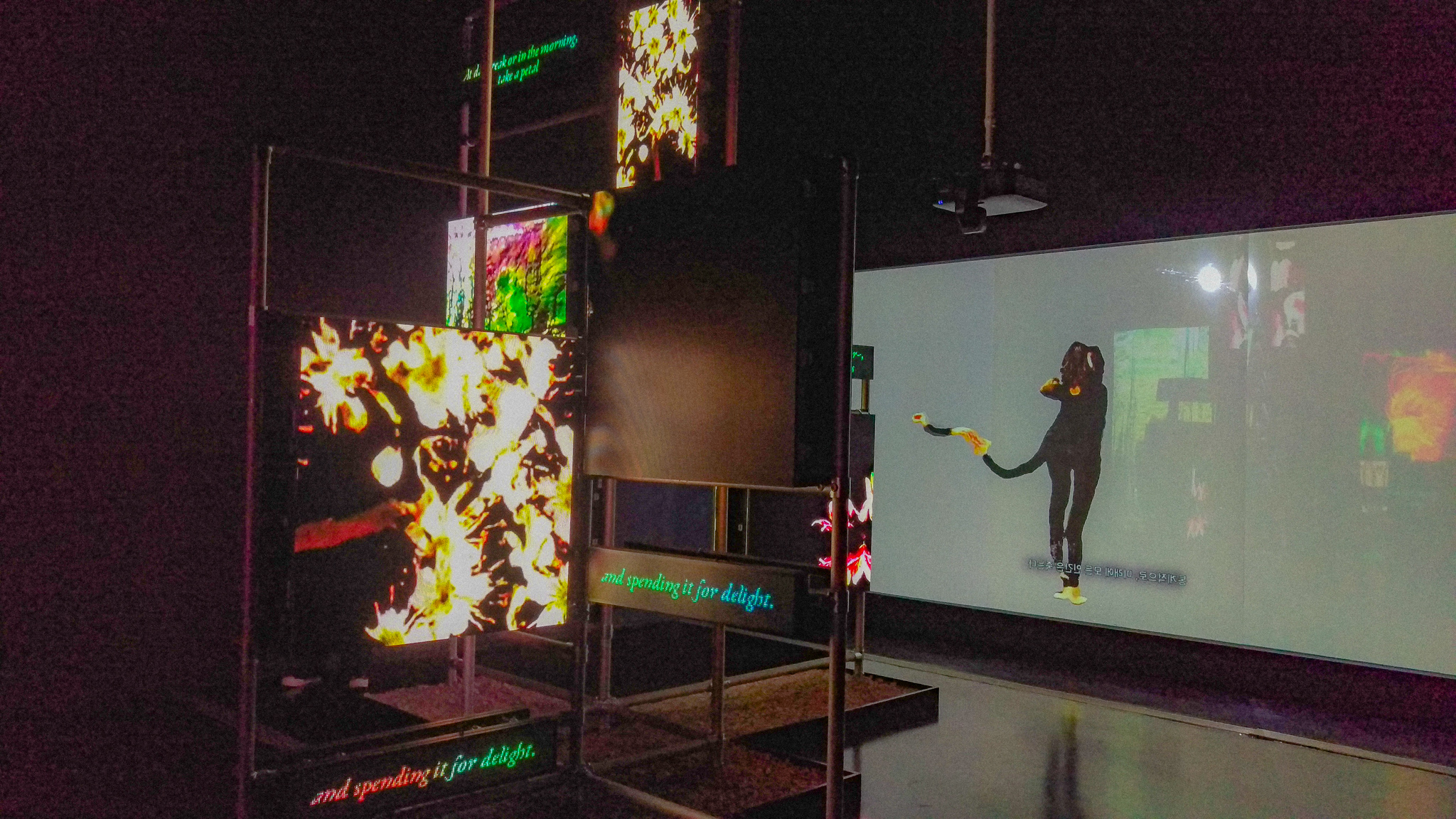 먼저 도슨트 분과 공간을 둘러보고 갈 때 아래 자갈이 깔려있고 LED 스크린에 꽃 같은게 있어서 정원을 표현한 것 같다는 생각은 했지만 막상 영상을 다 보니 엔딩에서의 느낌이 정말 강렬했다.