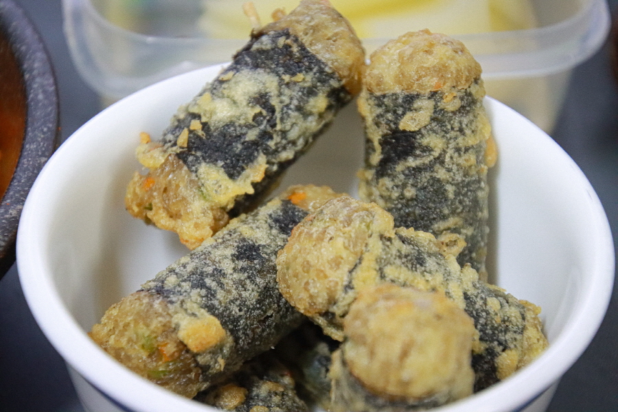 끓이는 동안 같이 사두었던 김말이도 에어프라이기에 돌려준다... 떡볶이 살 때 생각나서 같이 샀는데 2봉 묶음 세일해서 이것도 싸게 쟁여두었다. 다른 튀김이 없어서 아쉽지만 김말이만 있어도 훨씬 분식 먹는 분위기가 산다.