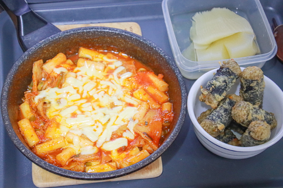 냉장고를 보니 피자치즈가 남아있다. 모짜렐라 치즈든 체다 치즈든 치즈는 떡볶이에 올려주면 다 잘 어울리는 것 같다. 오늘 칼로리 폭발하는데 뭐... 다음 끼니를 좀 적게 먹는 것으로...