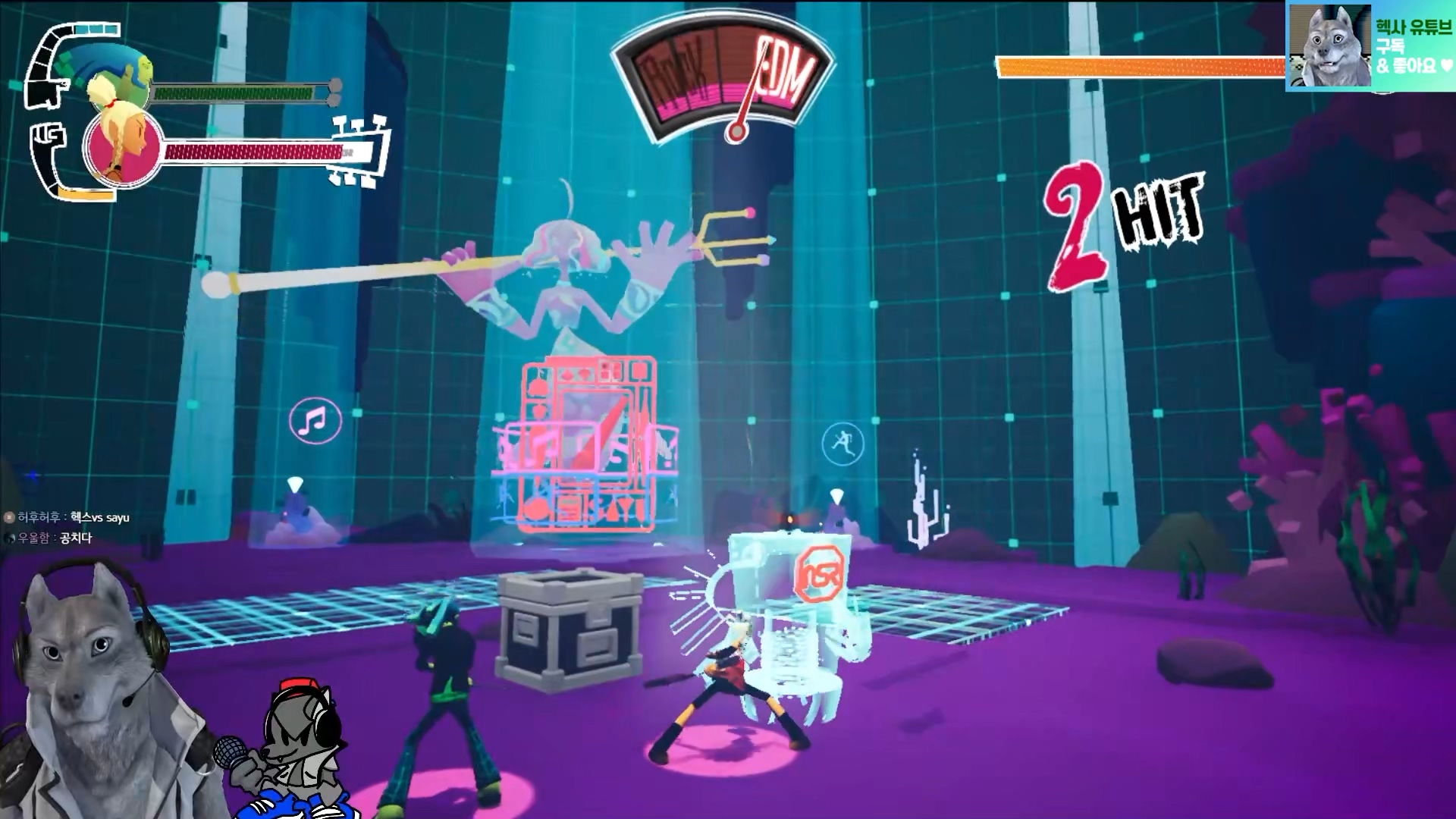 락에 미쳐있는 밴드 멤버인 주인공(메이데이, 주크)들과, EDM으로 도시(바이닐 시티)를 지배하는 세력(타티아나)과 보스들 사이의 다툼이 주된 스토리인데 주인공 캐릭터가 너무 무지성? 직진?이어서 조금 유치해 보이기도 하지만, 전체적인 느낌은 굉장히 좋습니다. 기성세대와 신세대 사이의 갈등과 화합이 주제라면 주제랄까? 음악적 다양함에 대한 무시와 차별이 아니라 서로에 대한 이해와 융합의 코드가 좋았습니다. 특히 아트워크와 음악이 굉장히 취향에 맞아서 플레이 하는 내내 눈과 귀가 즐거웠습니다. 다만, 액션과 캐릭터 기술 육성은 생각보다 큰 효과가 없어서 아쉬움이 있었고, 특히 리듬게임 본연의 박자를 맞춰서 플레이하는 쾌감은 조금 떨어지는 부분이 있습니다. 보스전과 약간의 수집 요소, 다회차 요소도 있긴 하지만 볼륨은 적은 편입니다.