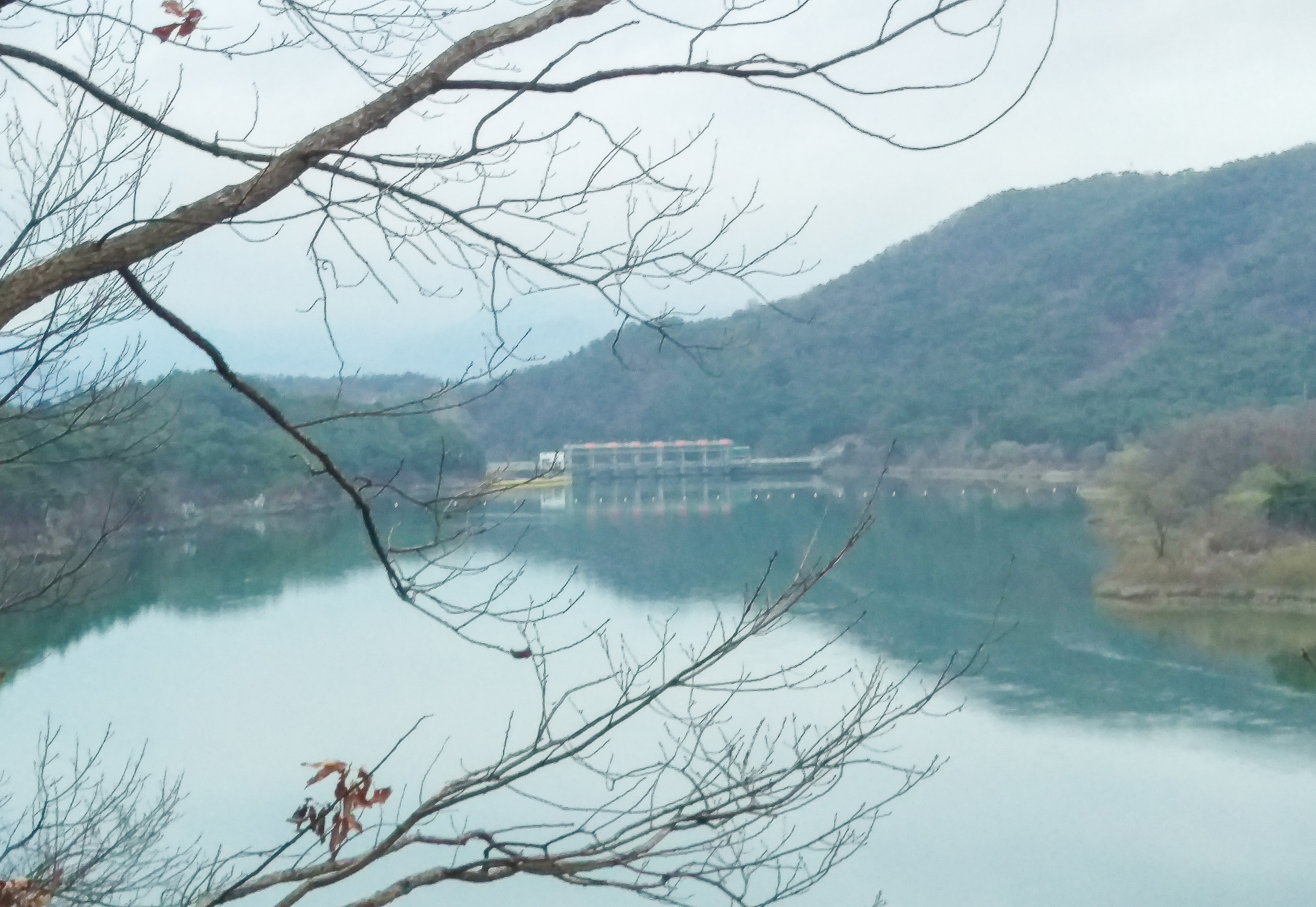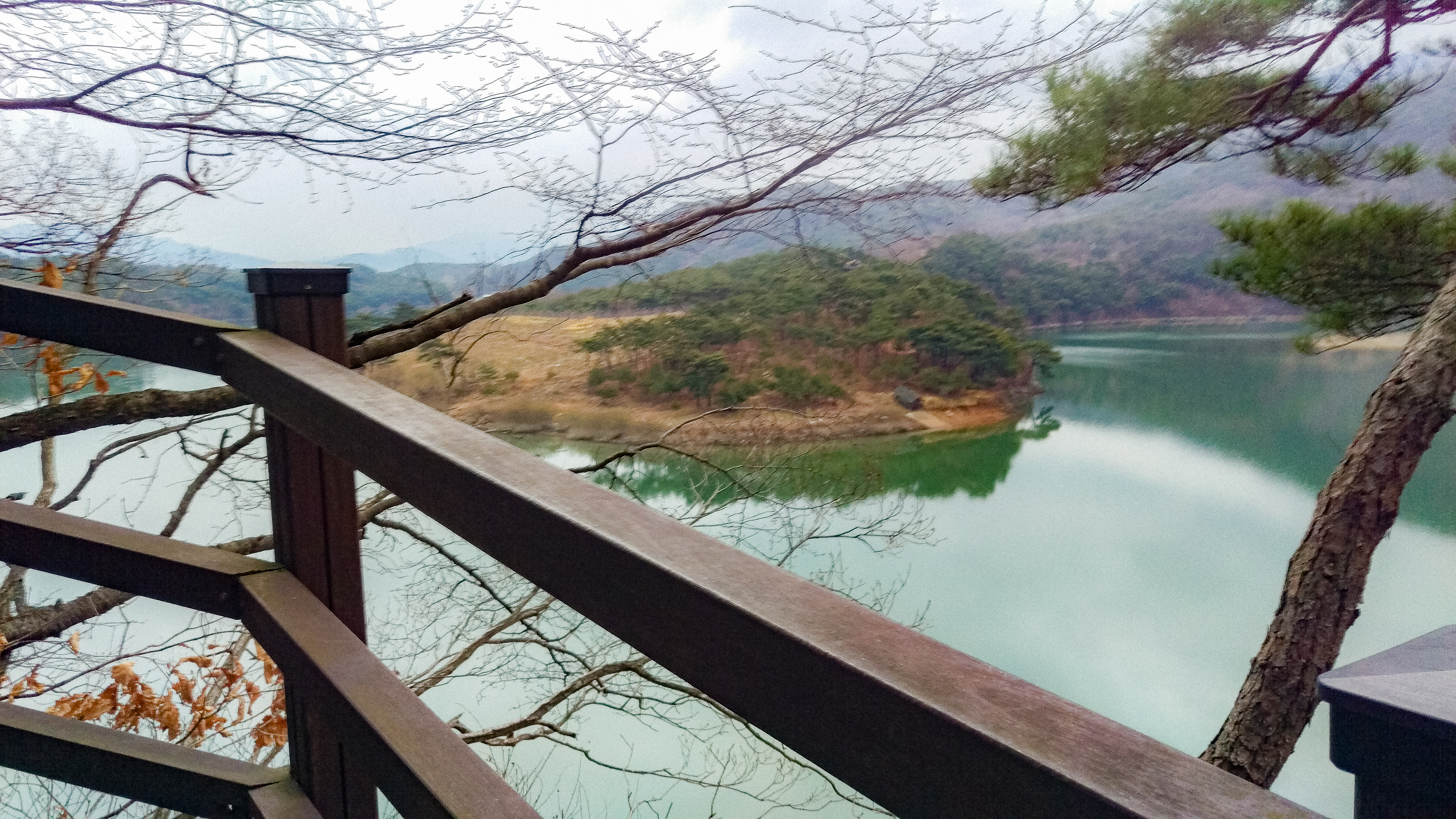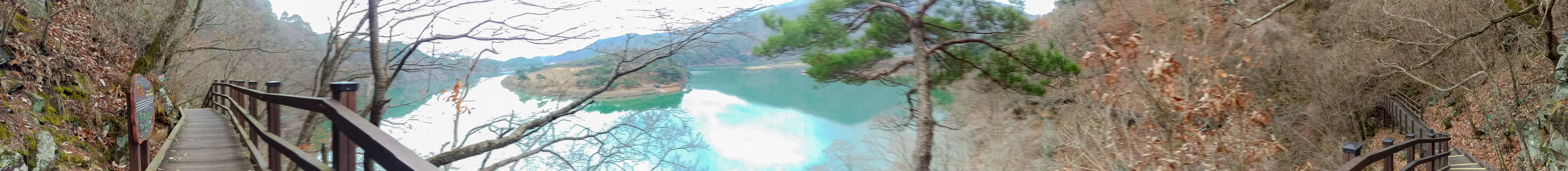 괴산 산막이옛길은 1957년 만들어진 괴산댐으로 만들어진 호수를 중심으로, 옛 마을을 이어주던 10리 길을 복원해 데크로 연결해 만든 길이라고 합니다. 재밌는 것은 제가 봤을 때 댐으로 만든 곳의 호수가 이렇게 휘몰아 나가는 형태를 한 것을 본 적이 없는데, 원래 물길이 이렇게 되어있던 것에 댐이 건설되고 물이 채워지면서 멋진 풍경이 되지 않았나 싶습니다.