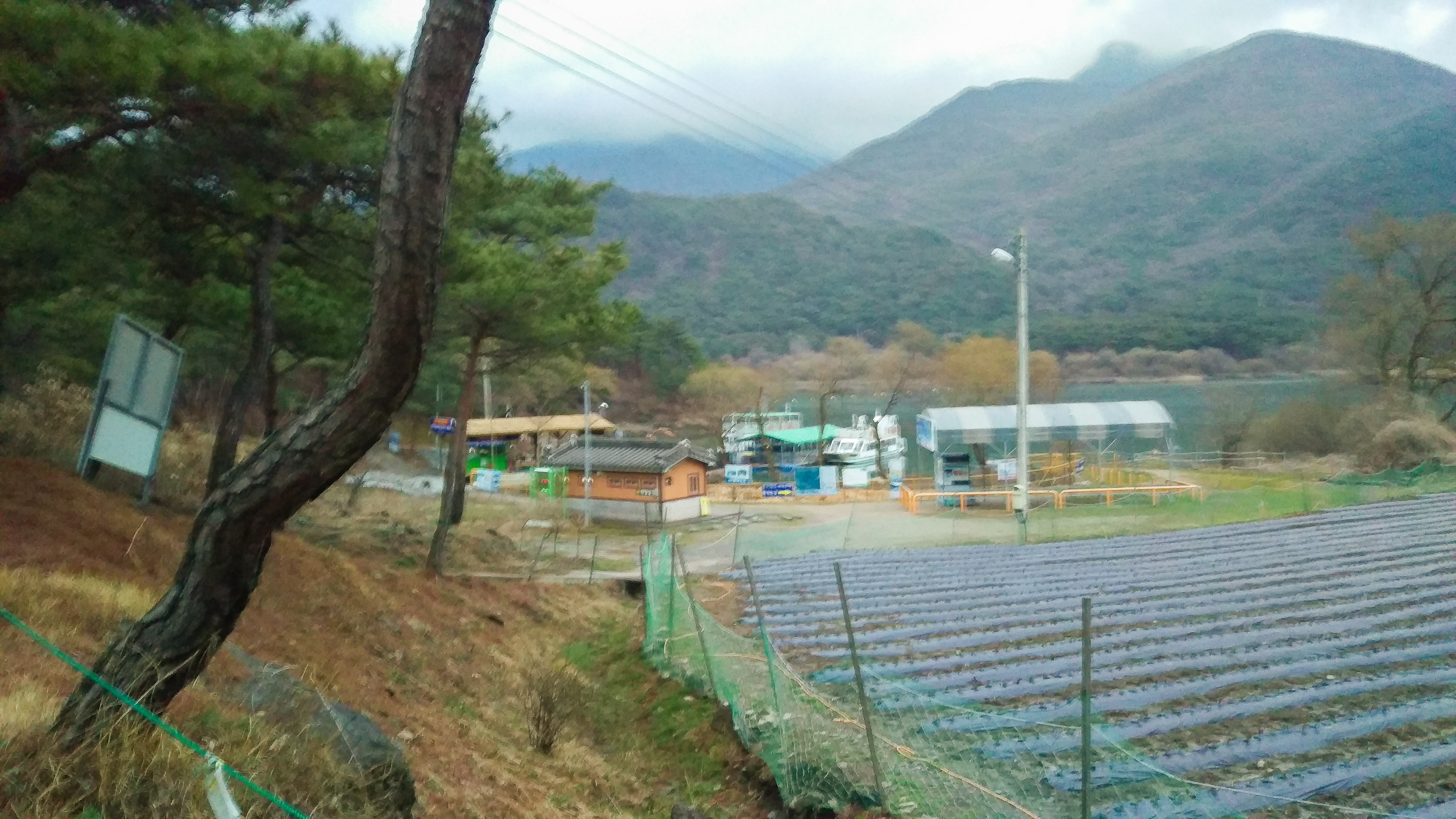 산막이 옛길 초입에서 유람선 탑승이 가능해서, 출발은 유람선을 타고 길 끝자락 까지 간 다음, 돌아오는 길을 걸어 오는 코스로 많이 선택하는 모양이었습니다. 제가 갔을때는 좀 느즈막한 오후라 유람선은 막배가 떠난 상태였고, 유람선의 기름 내음을 맡으며 걷기를 출발했습니다.
