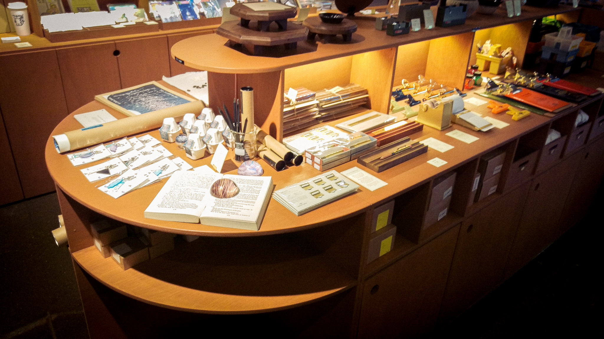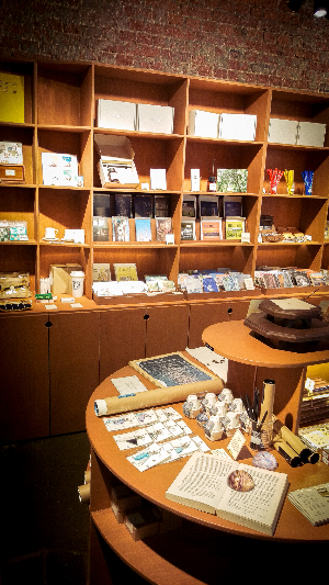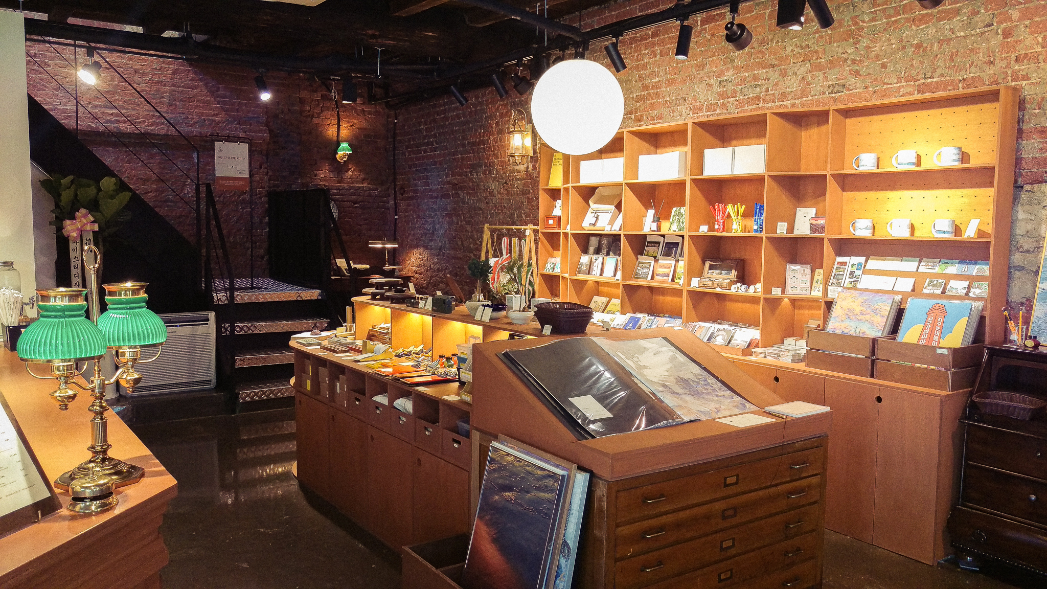 입구로 들어가면 바로 왼쪽에 보이는 로컬 굿즈 판매대입니다. 이걸 뭐라 불러야 할 지 모르겠는데, 미술관이나 박물관의 편집숍? 굿즈샵? 그런 느낌이 듭니다. 전체적으로 따뜻한 적벽돌과 나무로 인테리어가 되어있고, 따뜻하고 약간 조도가 낮은 조명이 곳곳에 배치되어 있습니다.