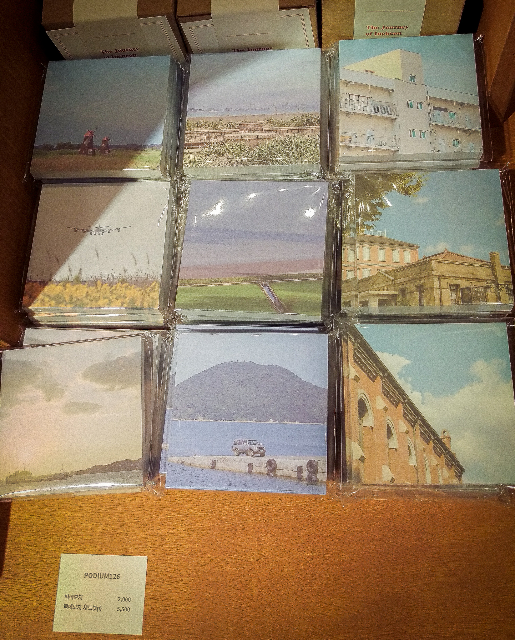 아래는 다양한 작가님들이 참여한 엽서와 사진, 스티커 작품들입니다. 인천을 테마로 한 프로젝트 <인천 잡화점의 기적>을 진행해서 선정된 작품들을 실제 굿즈로 제작해 판매중입니다. 사실, 저도 여기에 참여하게 되어서 방문하게 되었답니다. 지역을 테마로 한 다양한 콘텐츠를 발굴하고 제작하는 '인더로컬 협동조합'에서 기획한 프로젝트였는데, 인천의 다양한 장소들이 담긴 사진이 엽서와 문구류 등으로 제작되었습니다. 제가 촬영했던 인천의 사진들이 상품으로 제작되어 전시된 걸 보니 기분이 묘하더라고요. 이 상품들이 많이 알려져서 인천을 기념하는 대표 굿즈가 되었으면 좋겠다는 생각을 해보기도 했네요.