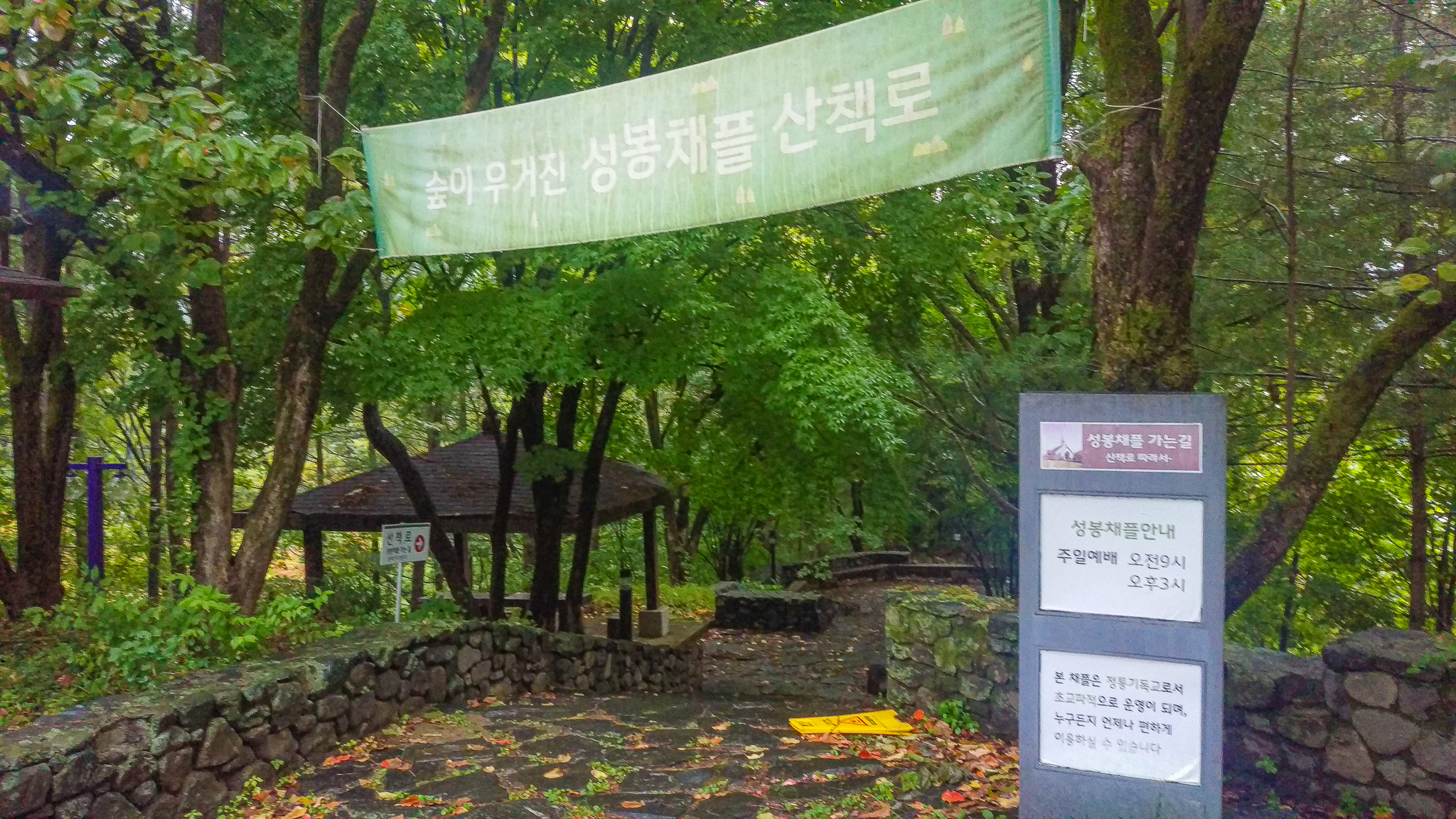 건물 밖에는 가벼운 산책로도 있는데요, 아래 사진 참고하세요. 성봉채플이라고 작은 교회가 있는 모양이에요. 주일 예배도 드리는 것 같습니다. 교회 다니시는 분들은 주말 숙박하실 때 참고하시면 될 것 같습니다.