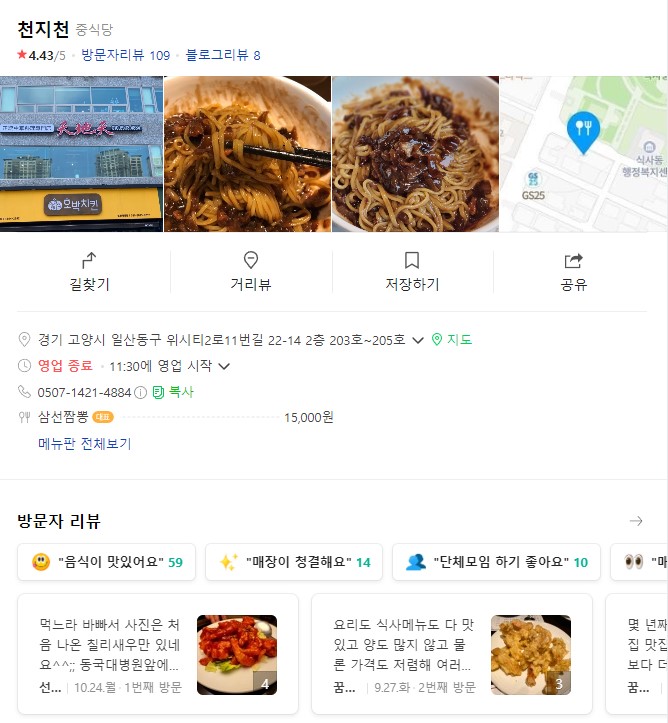 리뷰를 살펴보니 천지천 중국집이 동국대병원 앞에 있었는데 거기는 접으시고 약간 거리 있는 곳에서만 하시는 모양이에요. 원글도 좀 예전글이라 하니 이 정보도 참고할 만 하네요.