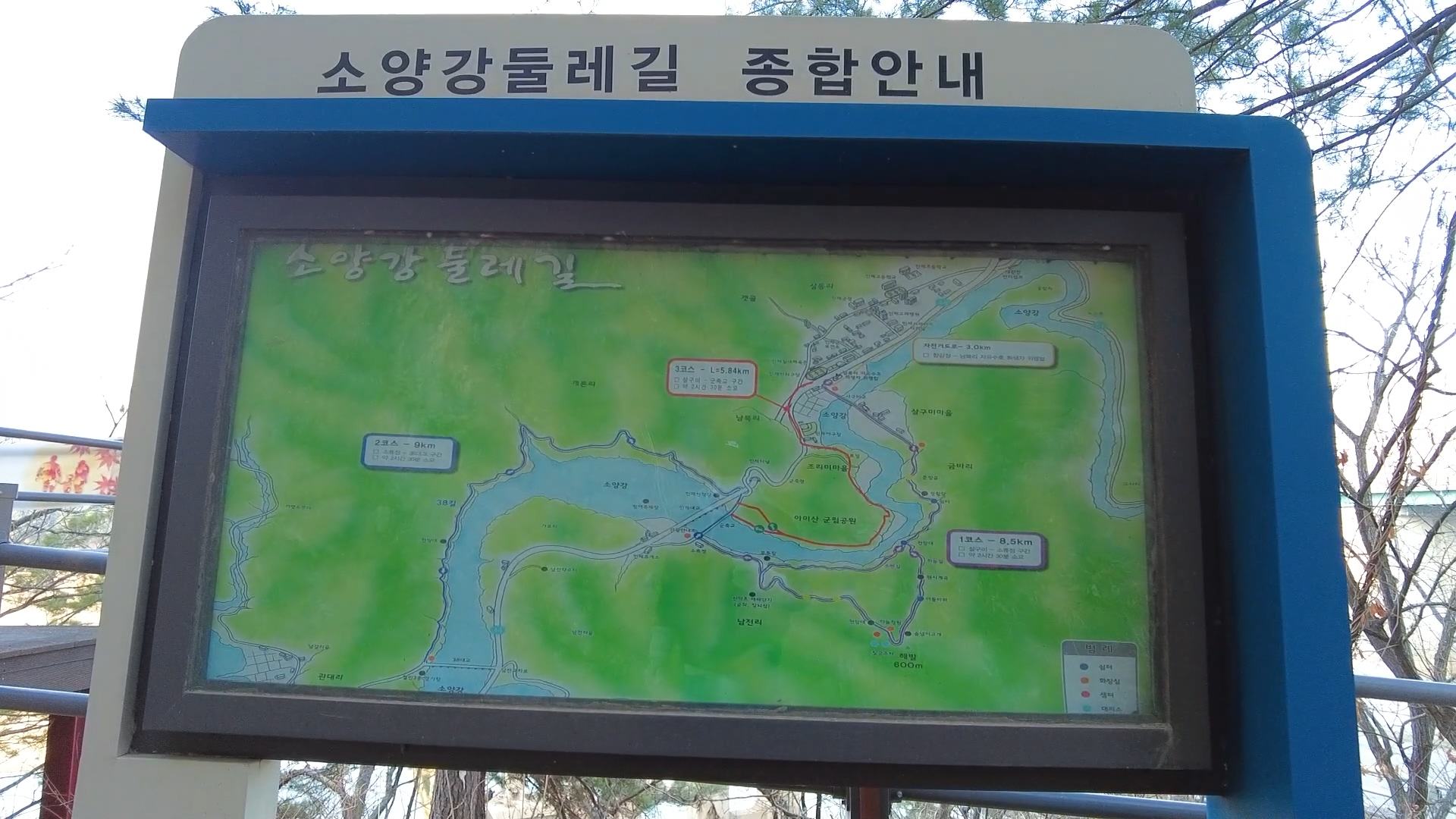 제가 둘러봤던 3코스, 1코스의 대략적 구간 표시 모습입니다.