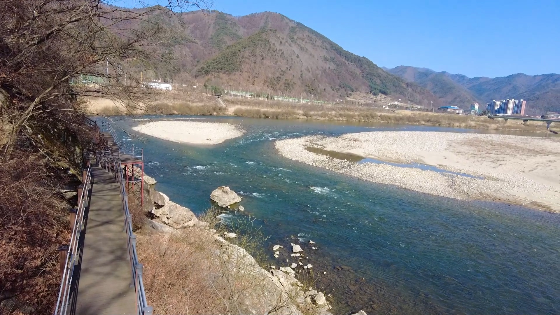 여름에 물이 많으면 정말 장관일 것 같습니다. 겨울에 보는 소양강의 모습도 뭔가 굽이치는 거대한 계곡의 원시 느낌이 나서 좋았어요. 뭔가 구간 구간만 보면 이국적인 느낌도 좀 있습니다.