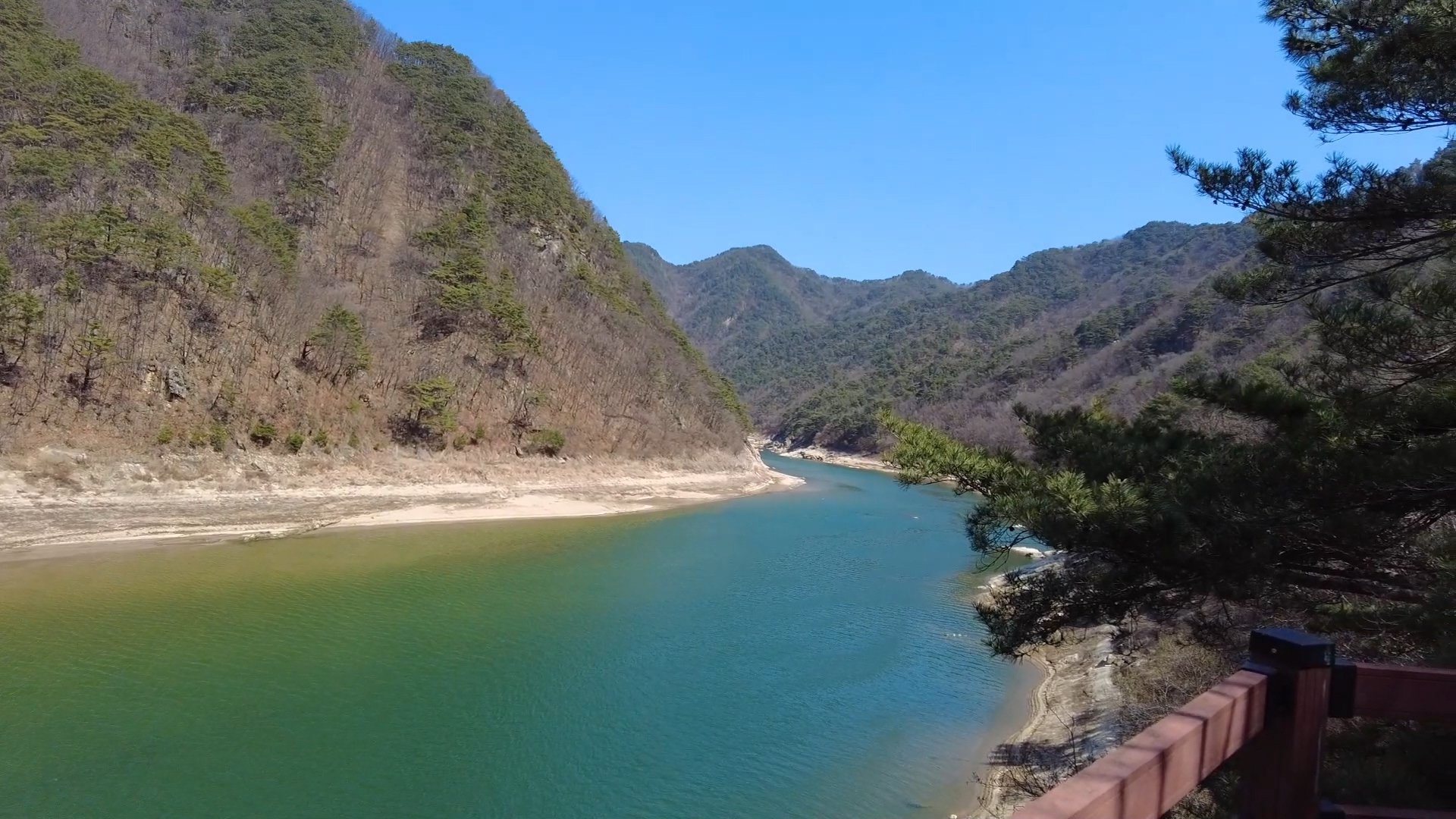 나중에 계절별로 여름, 가을에도 더 걸어보고 싶은 멋진 풍경이었습니다. 뭔가 영화에서 보던 깊고 오래되고 굽이치는 그런 큰 계곡의 느낌이었어요. 영상에는 그 느낌이 온전하게 담기진 않았지만 최대한 제 시점에서 느낀 걸 보여드리려고 편집해봤습니다 ^^
