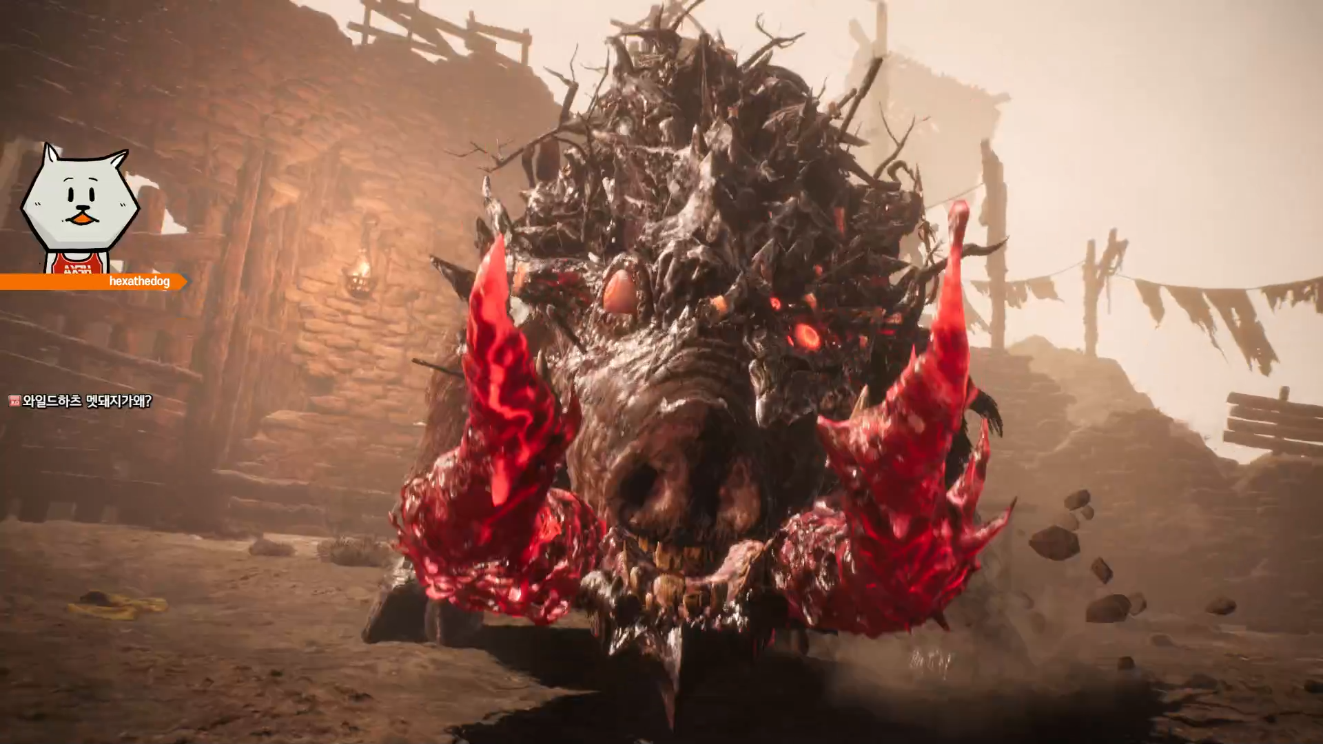 개인적으로는 아래의 몬스터가 특수기를 사용할 때 몸에 빨간 빛이 나와서 세키로의 살기 기술 같다는 느낌을 받았습니다. 패리의 맛과 속도감 때문인지 세키로와 블러드본 느낌이 많이 났고, 동료 시스템과 소환수 같은 것 때문에 여러 소울류 게임을 잘 재해석 했다고 생각했습니다.