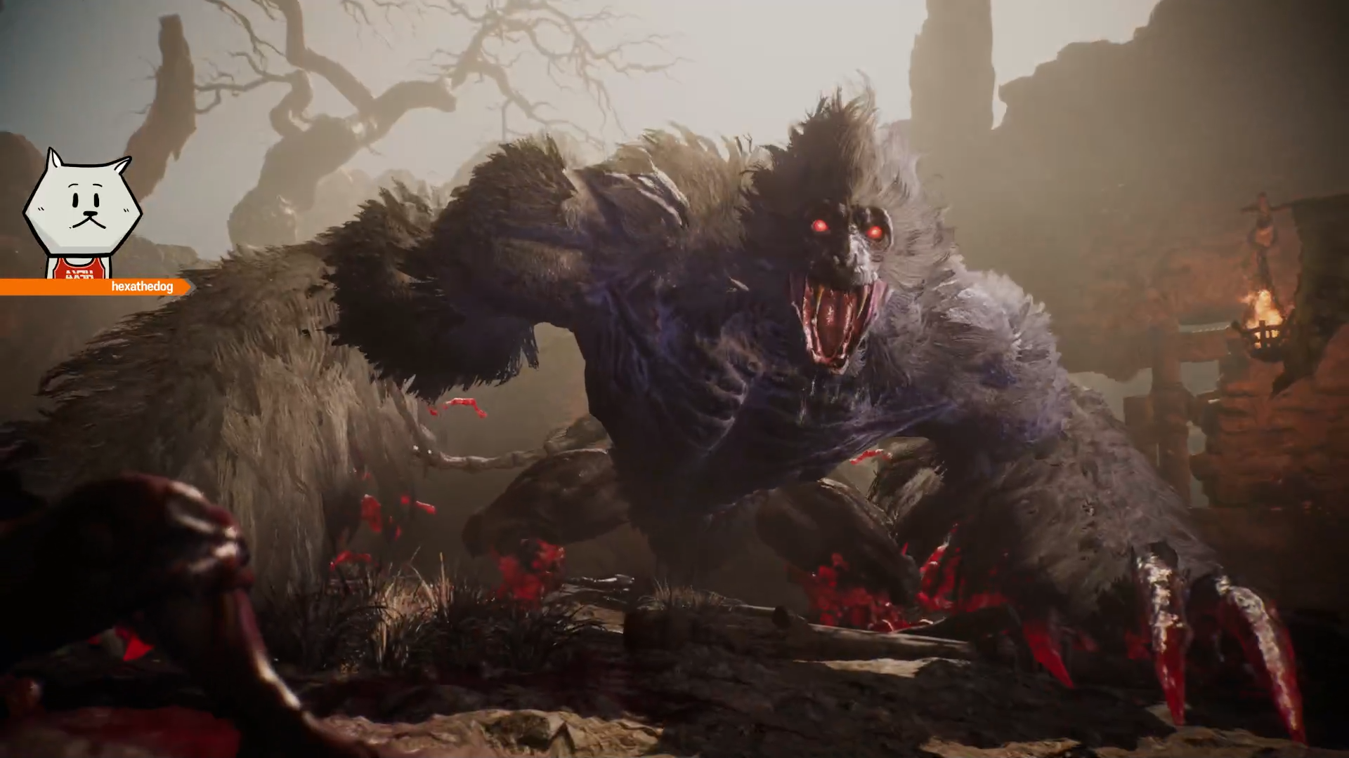 개인적으로는 아래의 몬스터가 특수기를 사용할 때 몸에 빨간 빛이 나와서 세키로의 살기 기술 같다는 느낌을 받았습니다. 패리의 맛과 속도감 때문인지 세키로와 블러드본 느낌이 많이 났고, 동료 시스템과 소환수 같은 것 때문에 여러 소울류 게임을 잘 재해석 했다고 생각했습니다.