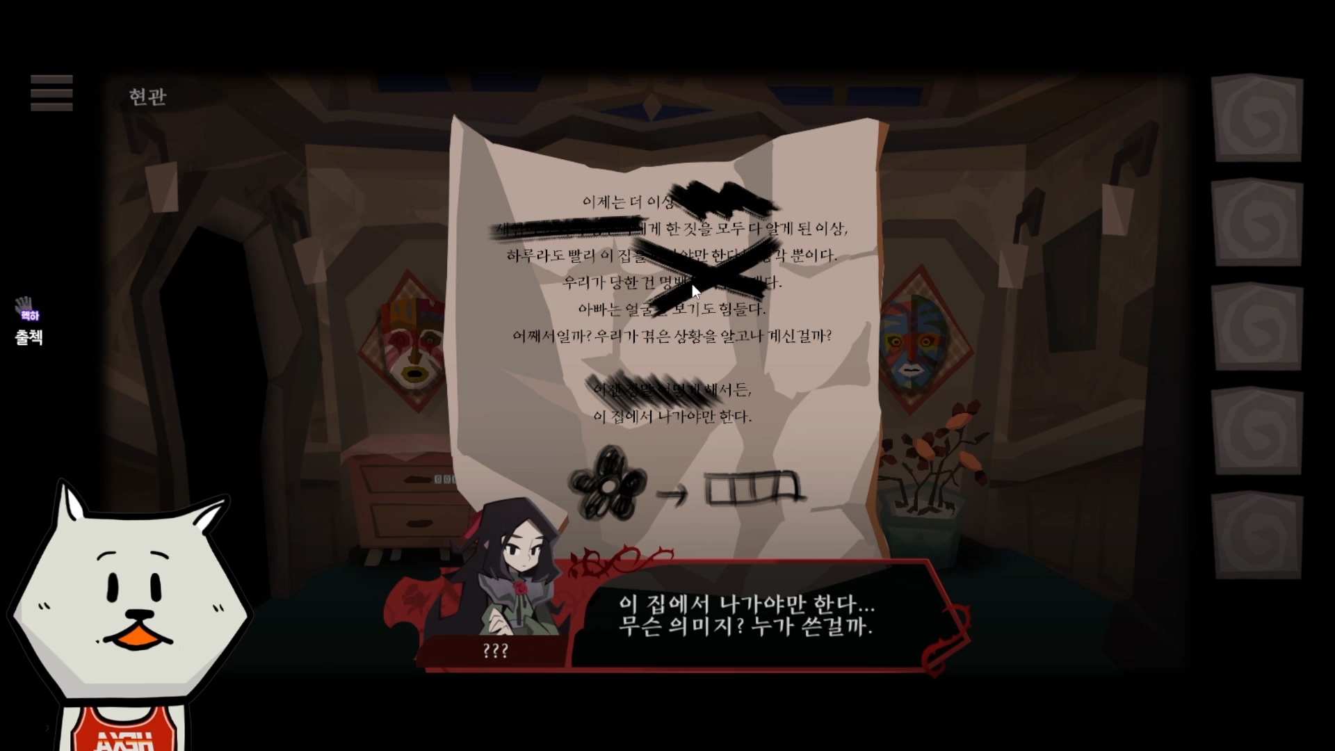 이 집에서 나가야해...! [장화홍련: 기억의 조각]은 한국 전래 동화를 원전으로 하는 포인트 앤 클릭 어드벤처 방탈출 게임입니다. 주인공 장화는 기억을 잃은 채 바닥에서 눈을 뜹니다. 당신은 장화가 되어 퍼즐이 가득한 방에 감춰진 진실을 찾고 동생 홍련과 함께 집을 탈출해야 합니다.