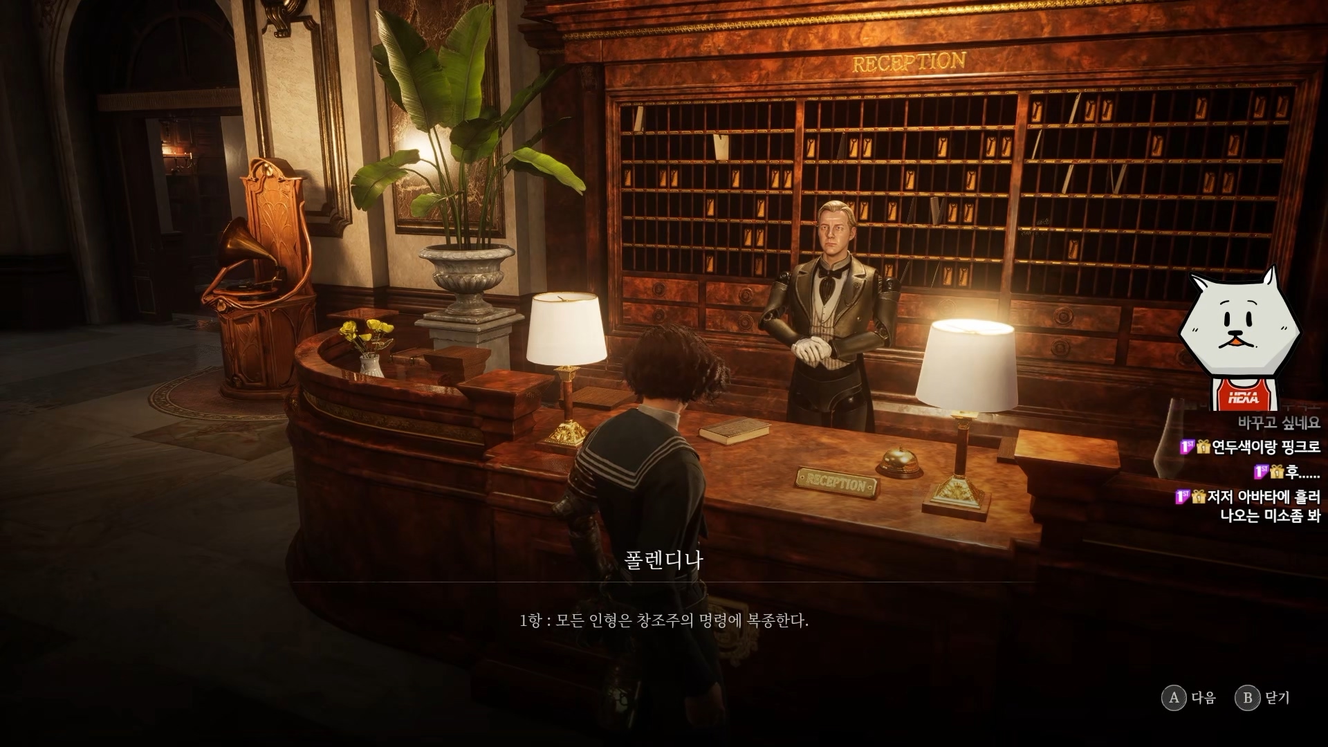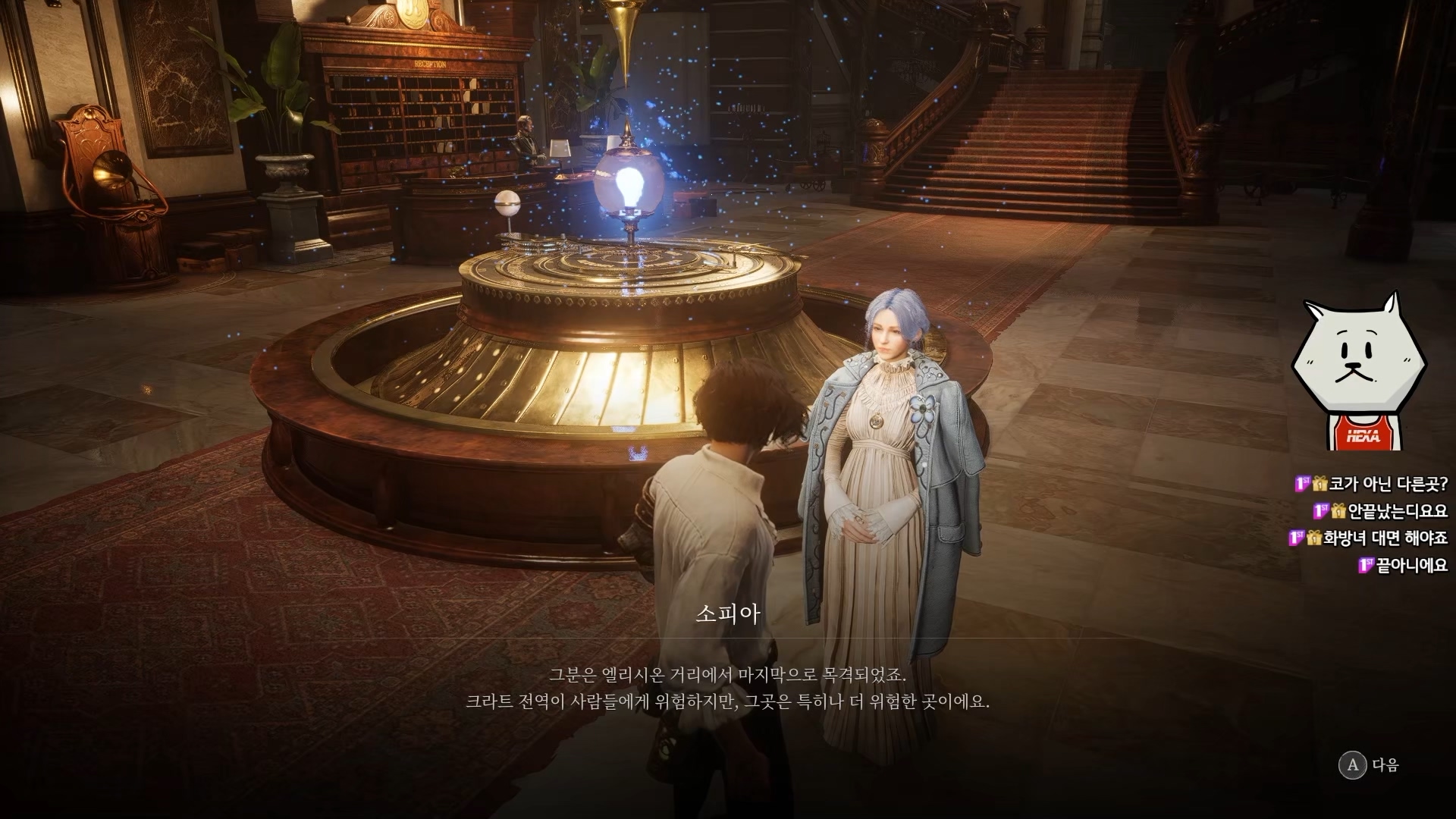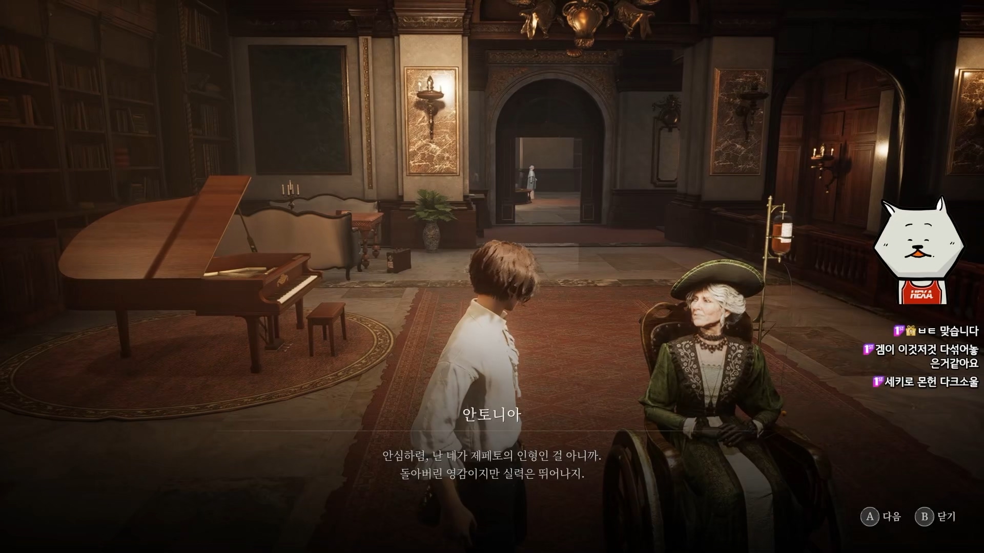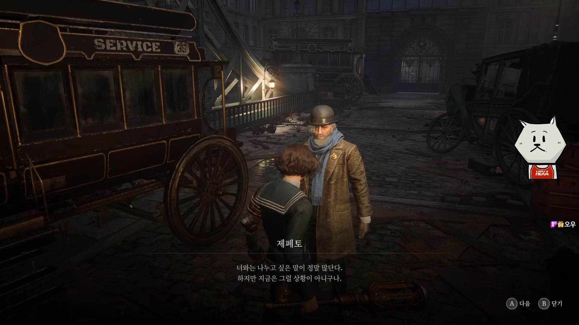 기본적으로 피노키오 동화를 재해석한 느낌의 스토리인데, 주인공은 인형으로 P기관이라는 기계 심장을 가지고 있으며, 이런저런 인간성과 관련된 이벤트들을 하다보면 태엽반응이라는 것을 하는 듯 합니다. 정확히 이 반응이 누적되면 무엇이 되는지 모르겠지만, 주로 음악이나 패션, 거짓말과 관련된 이벤트에서 반응하는 걸로 봐서는 기계 인형으로서 인간을 이해하게 되는 그런 서브 스토리가 있지 않을까 기대됩니다. 제작진 분들이 소울류 시리즈를 애정하는 분들이라고 들었는데, 이런 아기자기하고 치밀하게 숨겨진 요소들을 찾는 탐험의 재미가 있을 듯 해서 기대됩니다. 소울류 특유의 완벽한 세계관을 하나씩 찾아보는 재미가 어느 정도 구현될지 궁금하네요.