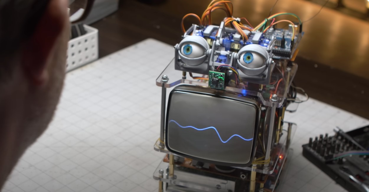 영상 초반에 본인이 꿈꾸던 과거 영화들의 로봇(스타워즈, 조니5 등)들을 보여주면서 이 작업에 대해 설명해주고 있는데요, 물론 AI스피커(알렉사는 미국 아마존에서 제공하는 서비스)와 반응하는 모니터, 눈 모듈이 전부지만 그 움직임이 너무 자연스럽고 반응이 빨라서 매력적입니다. 특히 레트로 감성의 영화 느낌이 많이 나는 투박한 디자인이라 개인적으로는 더 마음에 드네요. 영상을 보면 로봇의 눈동자가 사람을 따라가고, 사람 눈 특유의 한 번씩 미세하게 멈추었다가 움직이는 그런 모션을 굉장히 잘 살려서 자연스럽습니다. 아마도 3D프린팅과 프로그래밍 된 공개 버전을 잘 응용한 게 아닐까 생각되지만, 그것을 이렇게 멋지게 합쳐놓았다는 것 만으로도 대단한 것 같습니다. 입을 작은 모니터로 만든 것도 멋지네요.