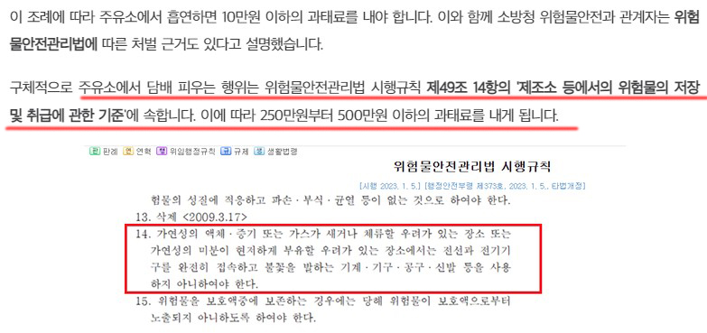 지난 23일 한 주유소에서 차에 기름을 넣으면서 담배를 피우는 운전자의 모습이 블랙박스 영상에 포착돼 사회적 공분이 일었습니다.이와 관련해 조선일보, 매일신문 등에서 '주유소에서 담배 피