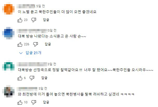 뭔가 맑은 정신의 광기같은게 느껴지는 선곡들ㅎ 심리전으로 이런 방송을 하는게 북한에서 두려워하는 이유가 확실히 있어 보이긴 하네요, 뉴스에 나온 북한관련 음성 뉴스 내용들도 주민들에겐 어떻게 받아들여질지도 궁금하네요. 아무튼 댓글로 최소한의 딜로 극한의 긁힘을 유발한다는 말에 공감합니다. ㅎ