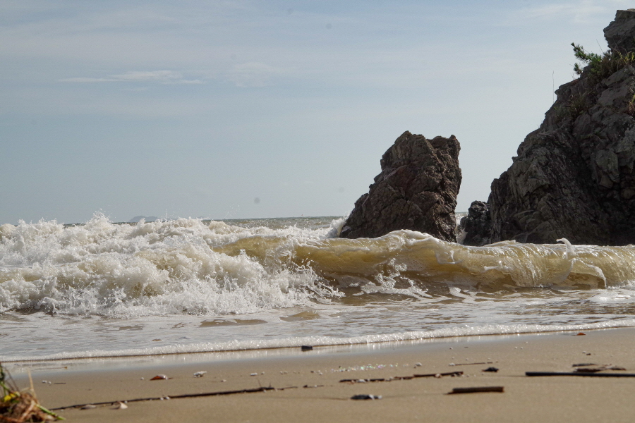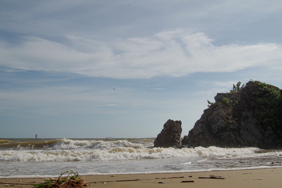 태풍 종다리가 소멸된지 좀 됐지만 바다도 한참 뒤집어졌는지 색이 탁하고, 해변 구석으로는 잡동사니들이 쌓여있습니다. 주로 스티로폼 부스러기가 많던데 다 어디서 온 것일지... 치우는데도 한참 걸리겠더라고요. 그래도 메인 해변쪽에는 쓰레기가 별로 없습니다. (근데 누가 너구리 먹고 봉지 버렸나요...)