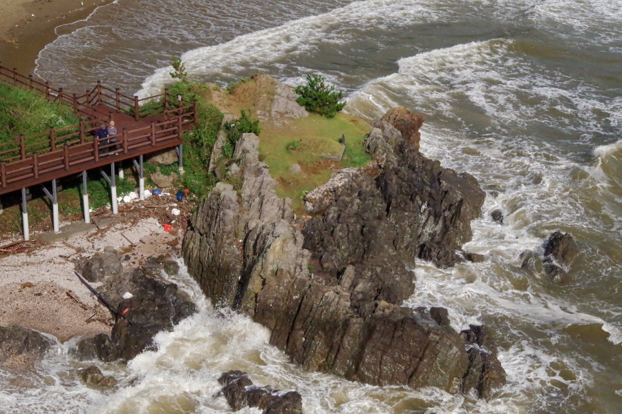 태안을 들렀는데 삼봉해수욕장 근처의 안내표지에 새로운 전망대가 생겼다고 써있더라고요 그래서 한 번 들러봤습니다. 태풍이 소멸된지 얼마 되지 않아서 사람이 없을 줄 알았는데 그래도 구경나온 분들이 좀 계시더라고요.