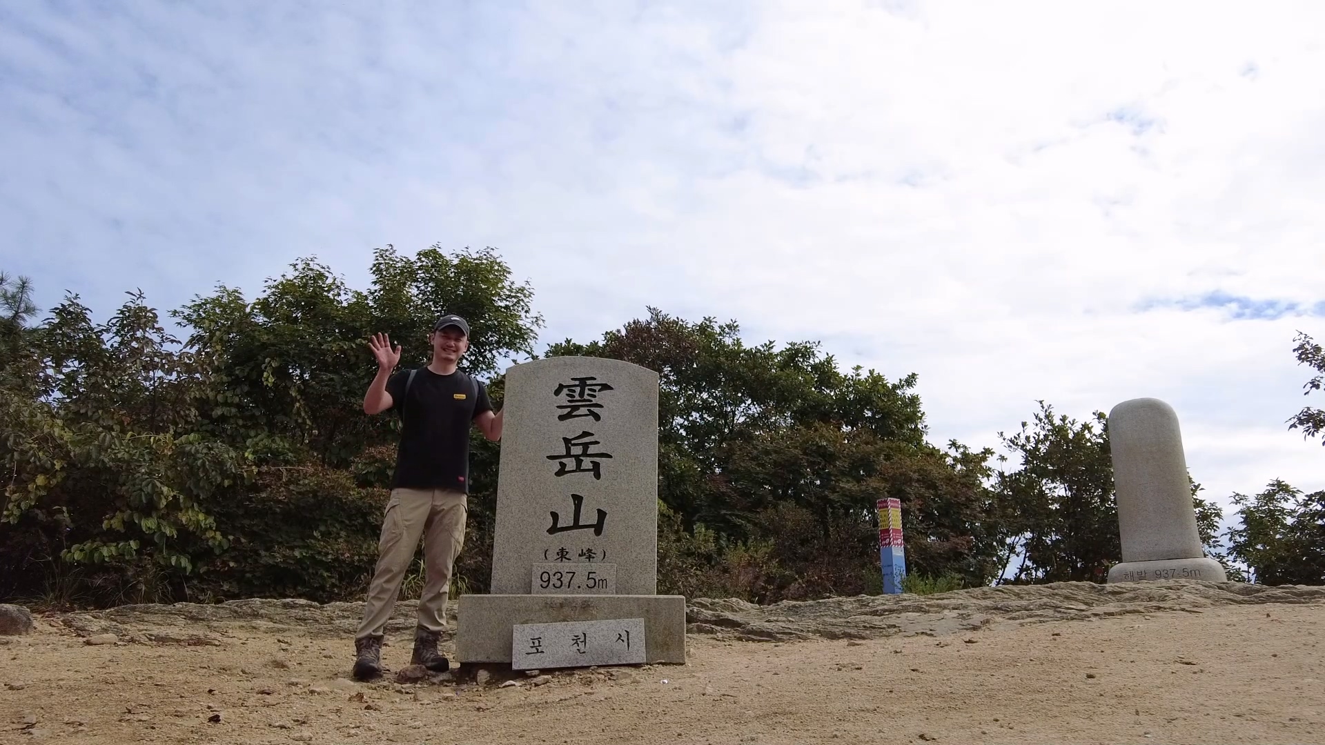 아래 사진 보면 아시겠지만, 운악산은 정상에서 바라보는 풍경이 나무로 가려져서 시야가 좋지 않습니다. 그래서 정상 약간 아래에 있는 만경대나 관람 데크에서 쉬어가는 것을 추천드립니다. 정상에서는 포천시와 가평군을 경계로 서로 넘어갈 수 있도록 등산로가 나있습니다.