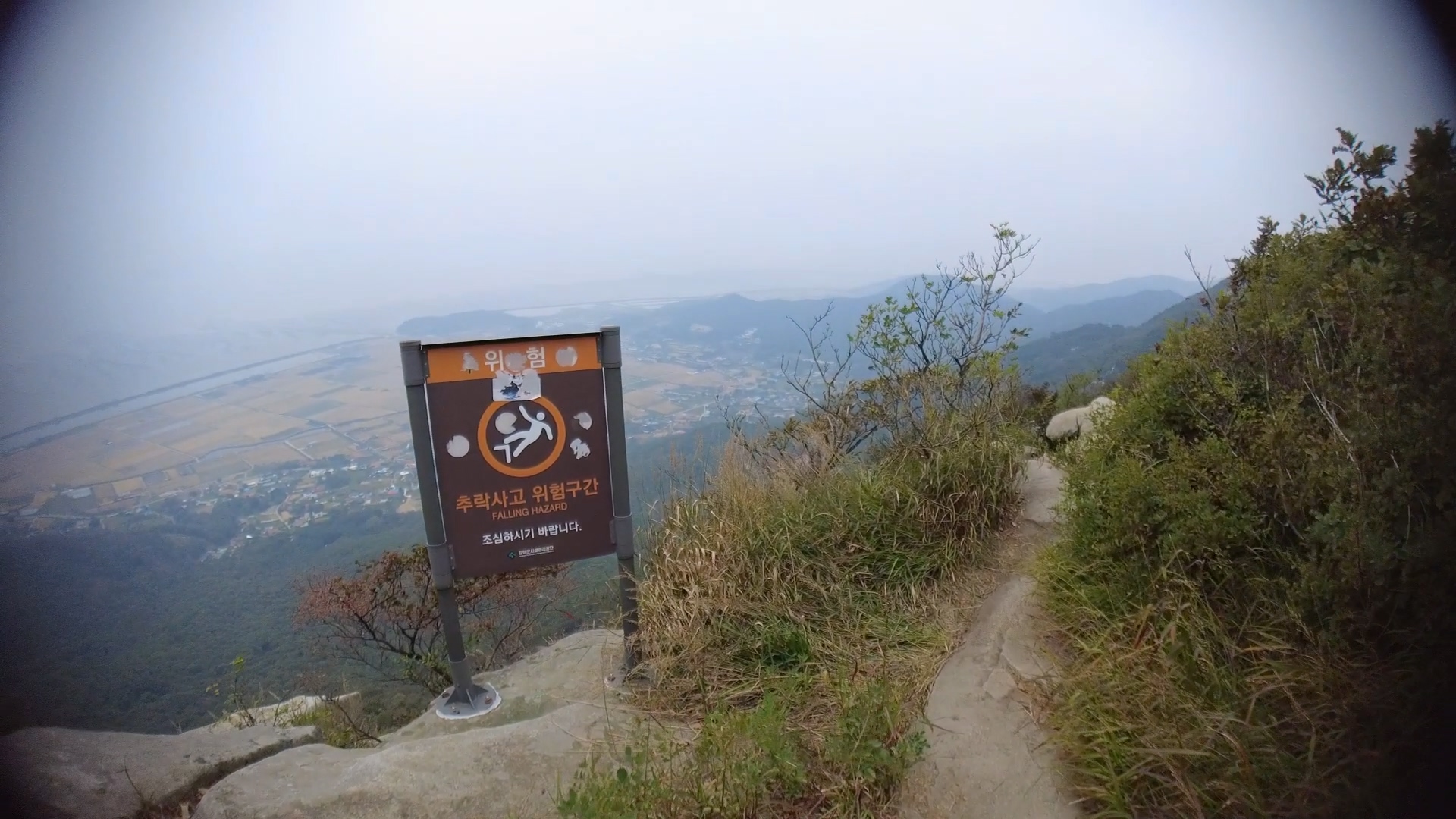 사진으로 보고 간 것 보다 더 멋졌던 함허동천 암릉구간 능선! 코스도 그렇게 길지 않은데 암릉 구간이 길게 차지하고 있어서 경치 감상하면서 가면 시간 가는 줄 모릅니다. 제가 갔던 날은 날이 조금 흐려서 시원했지만 바다 멀리 시야가 잘 나오지 않아서 아쉬웠는데 다른 계절에 날씨 좋을때 또 가보고 싶다는 생각이 들었습니다. 절벽이 있기 때문에 조심하라는 문구가 있을 정도로 아찔한 맛이 있는 구간이었습니다.