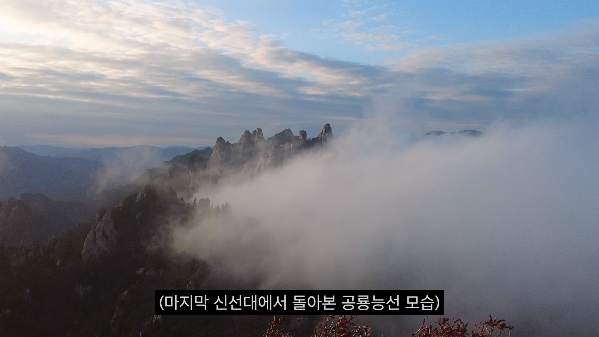 다양한 봉우리에 이름들이 다 붙어있는데 대략적인 자료만 찾아보면서 이름을 자막으로 넣어보았습니다. 그런데 뭔가 설악산 봉우리 이름중에 멋이 좀 없는? 그런 느낌의 봉우리들도 좀 있는 것 같아요 ㅋㅋㅋ 아무튼 직관적으로 알 수 있는 봉우리나 바위들이 많았습니다. 공룡 능선에는 정말 셀 수 없이 다양하고 신기한 기암 절벽과 바위들이 많았고, 내설악 외설악을 양쪽으로 보며 걸으니 정말 아름다운 풍경이 쉬지 않고 이어졌습니다.
